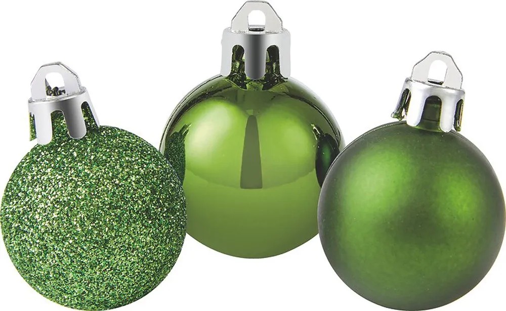 9x guľa na vianočný stromček s priemerom 3 cm zelená lesklá