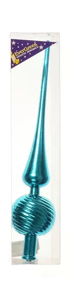Špička na vianočný stromček v lesklom tyrkysovom prevedení s dĺžkou 28 cm. Táto ozdoba nie je vyrobená zo skla a je teda takmer nerozbitelná.