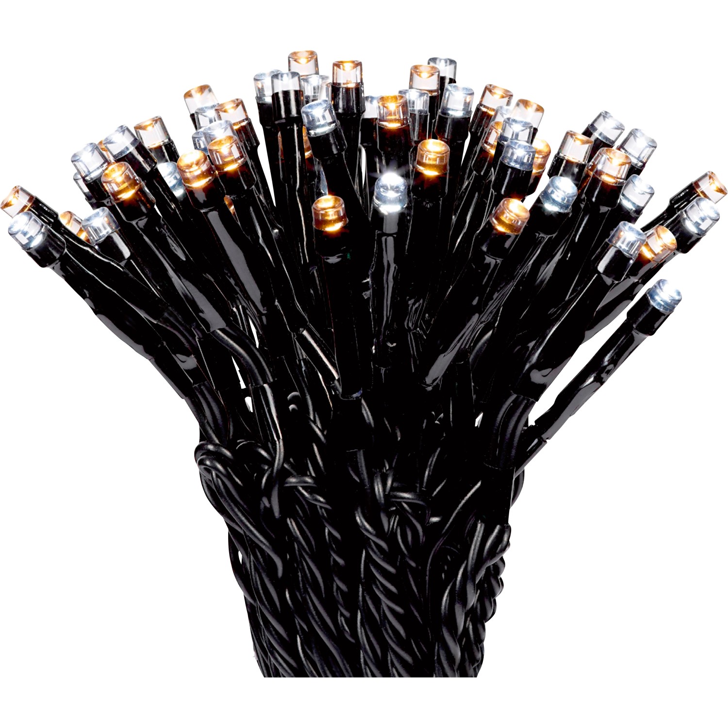 Vianočná reťaz s 96 LED diódami. Farba svetla teplá a studená biela. LED diódy sa vyznačujú nízkou produkciou tepla a extrémne nízkou spotrebou energie a dlhou životnosťou. Dĺžka svetelnej reťaze je 7,6 m s 5 m napájacím káblom. Stlačením tlačidla si môžete vybrať až z 8 blikajúcich funkcií. Vhodný pre vnútorné i vonkajšie použitie.