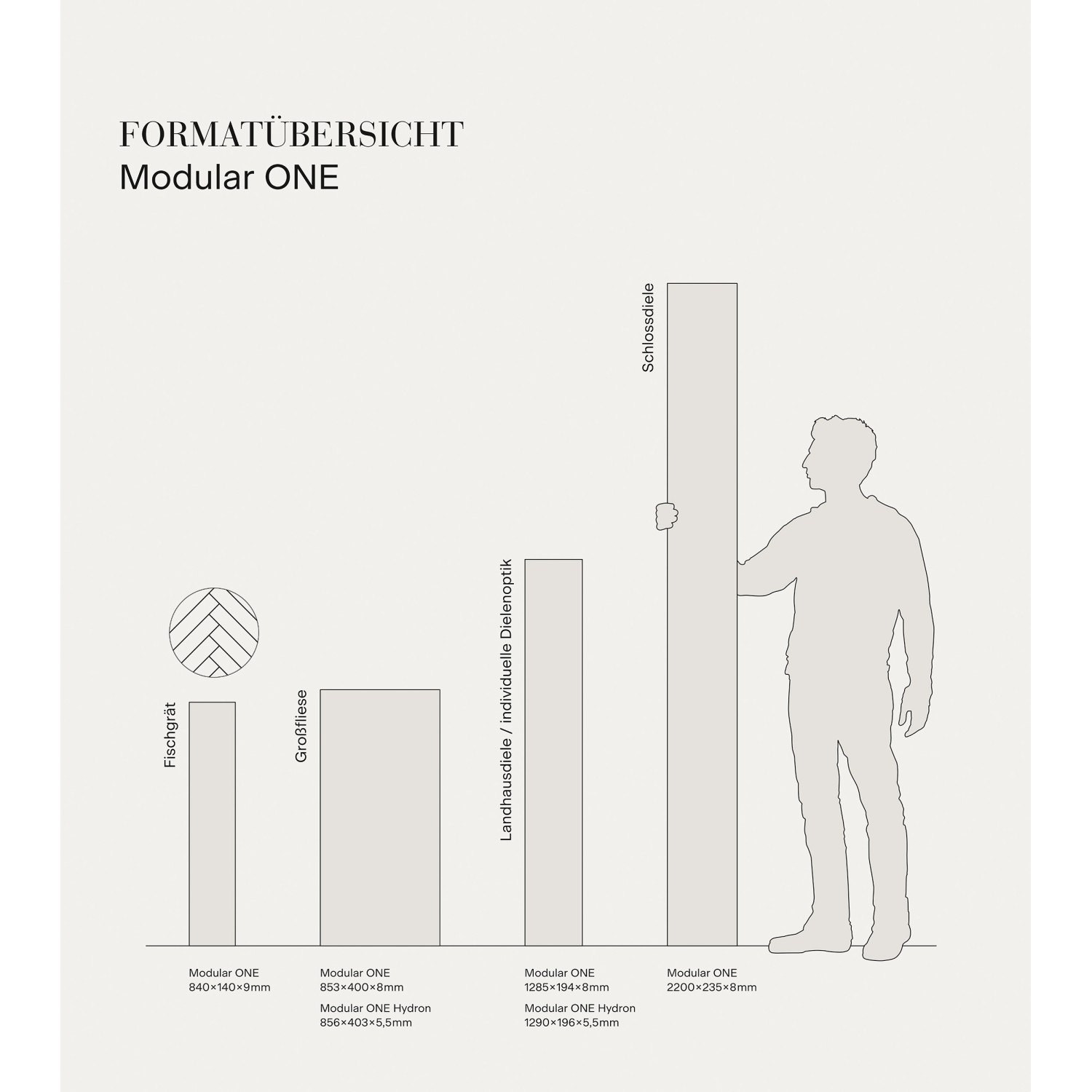 Modular ONE, vysoko výkonná a moderná viacvrstvová podlaha, vyzerá a pôsobí ako drevená podlaha, ľahko sa udržuje ako laminátová podlaha a je odolná ako vinylová podlaha.