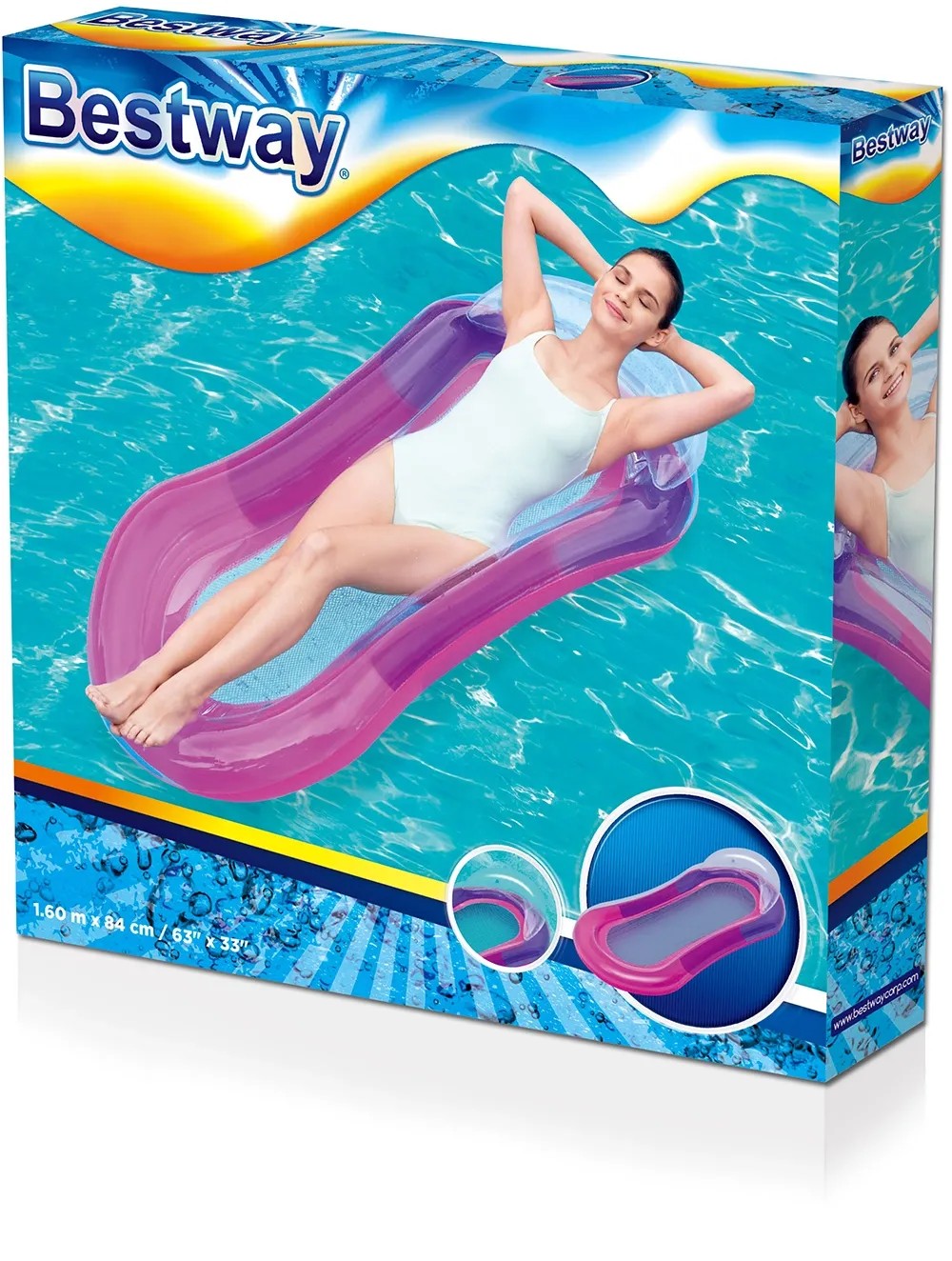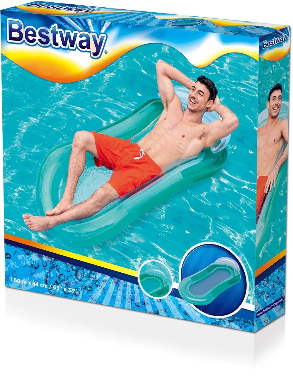 Senzačné nafukovacie lehátko Bestway Aqua Lounge je ideálne na leňošenie vo vode. Lehátko je vybavené nafukovacími bočnicami a podpierkou hlavy, výplň je zo sieťoviny čo umožňuje neustály kontakt s vodou. Lehátko je vyrobené z PVC s maximálnou záťažou 90 kg.