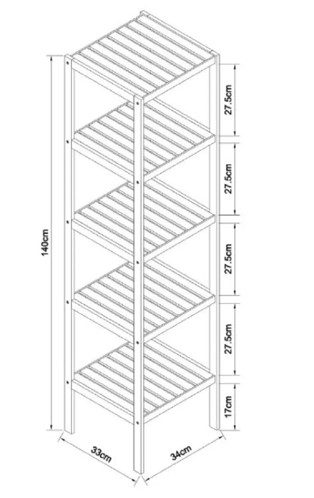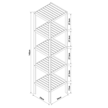 Eisl Bambusový kúpeľňový regál s 5 policami, 34 x 33 x 140 cm