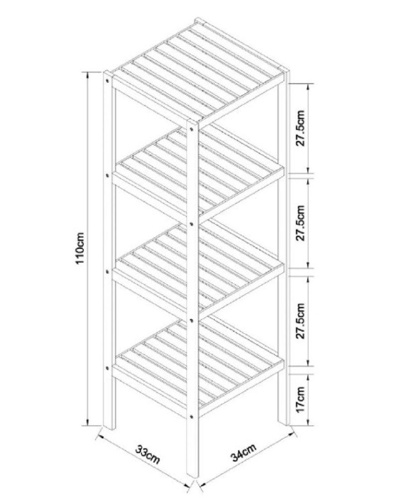 Eisl Bambusový kúpeľňový regál so 4 policami, 34 x 33 x 110 cm