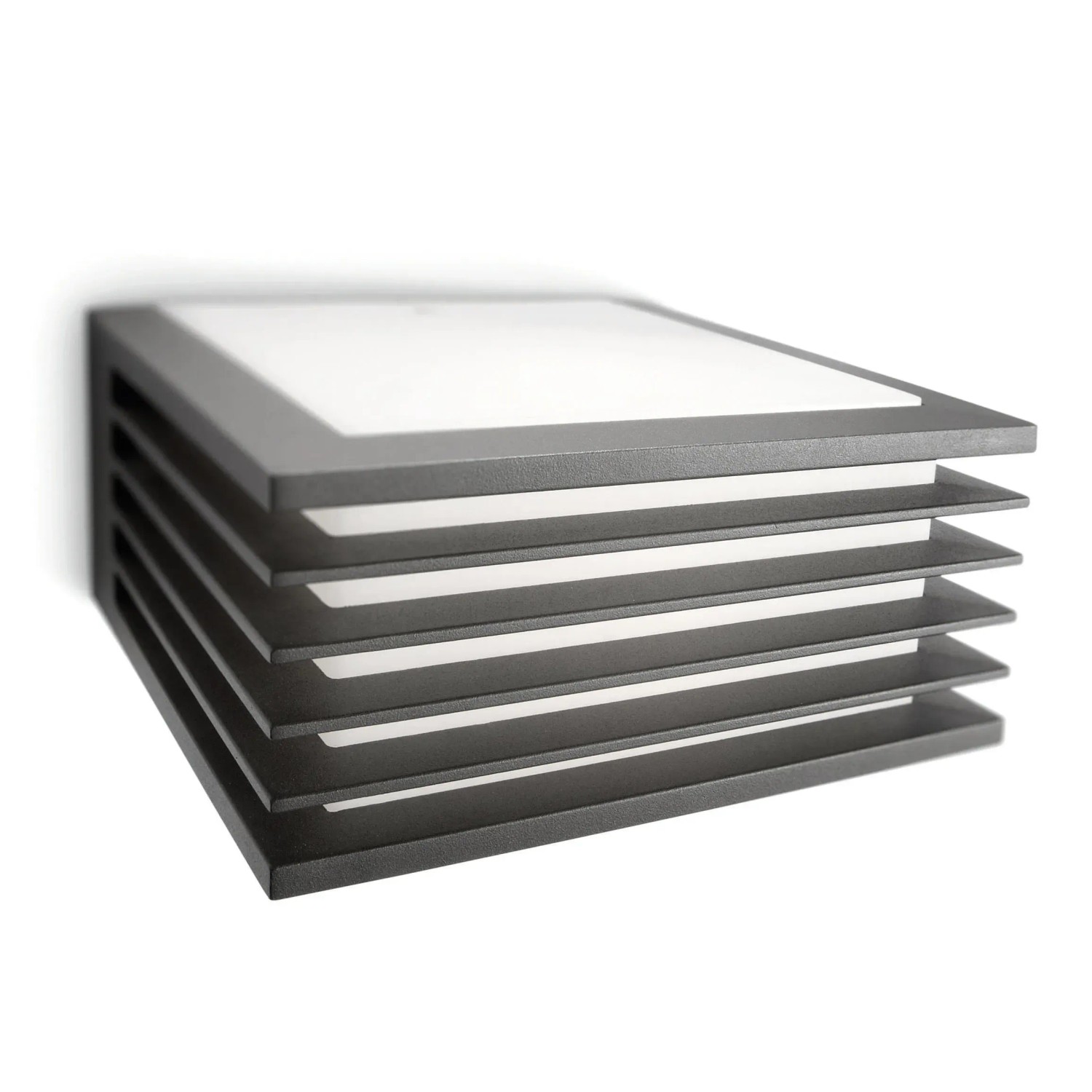 Jedinečný dizajn pre jedinečné okamihy pod holým nebom. Toto elegantné antracitové nástenné svietidlo Philips je vyrobené z hliníka s plastovým krytom svetla. Krásne efekty dvojsmerného svetla vás vyzvú na posedenie a odpočinok na záhrade. Svietidlo má jednu päticu E27, ktorú je možné osadiť ľubovoľným svetelným zdrojom o max. príkone 42 W (svetelný zdroj nie je súčasťou balenia). Toto vonkajšie svietidlo Philips je špeciálne navrhnuté pre vlhké vonkajšie prostredie a prešlo náročnými testami, ktoré zaistili jeho vodeodolnosť. Svietidlo je skonštruované s ochranou IP44: je chránené proti striekajúcej vode a jedná sa o výrobok, ktorý je najbežnejší a najvhodnejší pre všeobecné vonkajšie použitie.