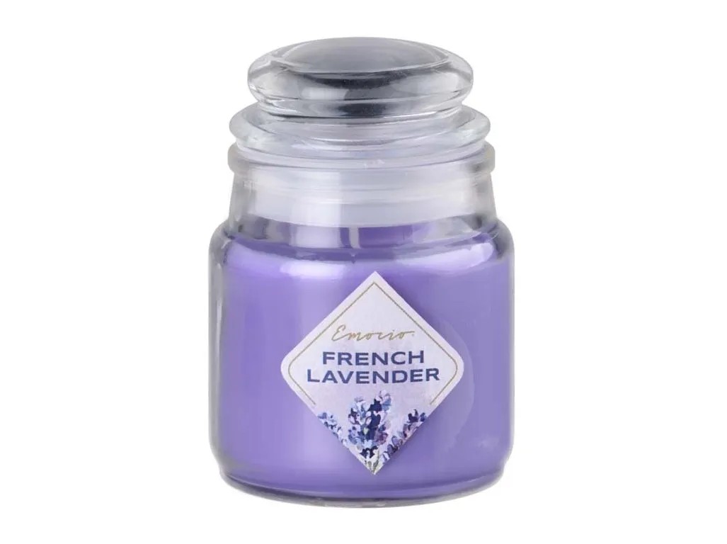 Vonná sviečka v dekoračnom skle so skleneným viečkom o rozmere 57 x 85 mm s vôňou francúzskej levandule (French Lavender) prevonia zaručene každý domov alebo kanceláriu.