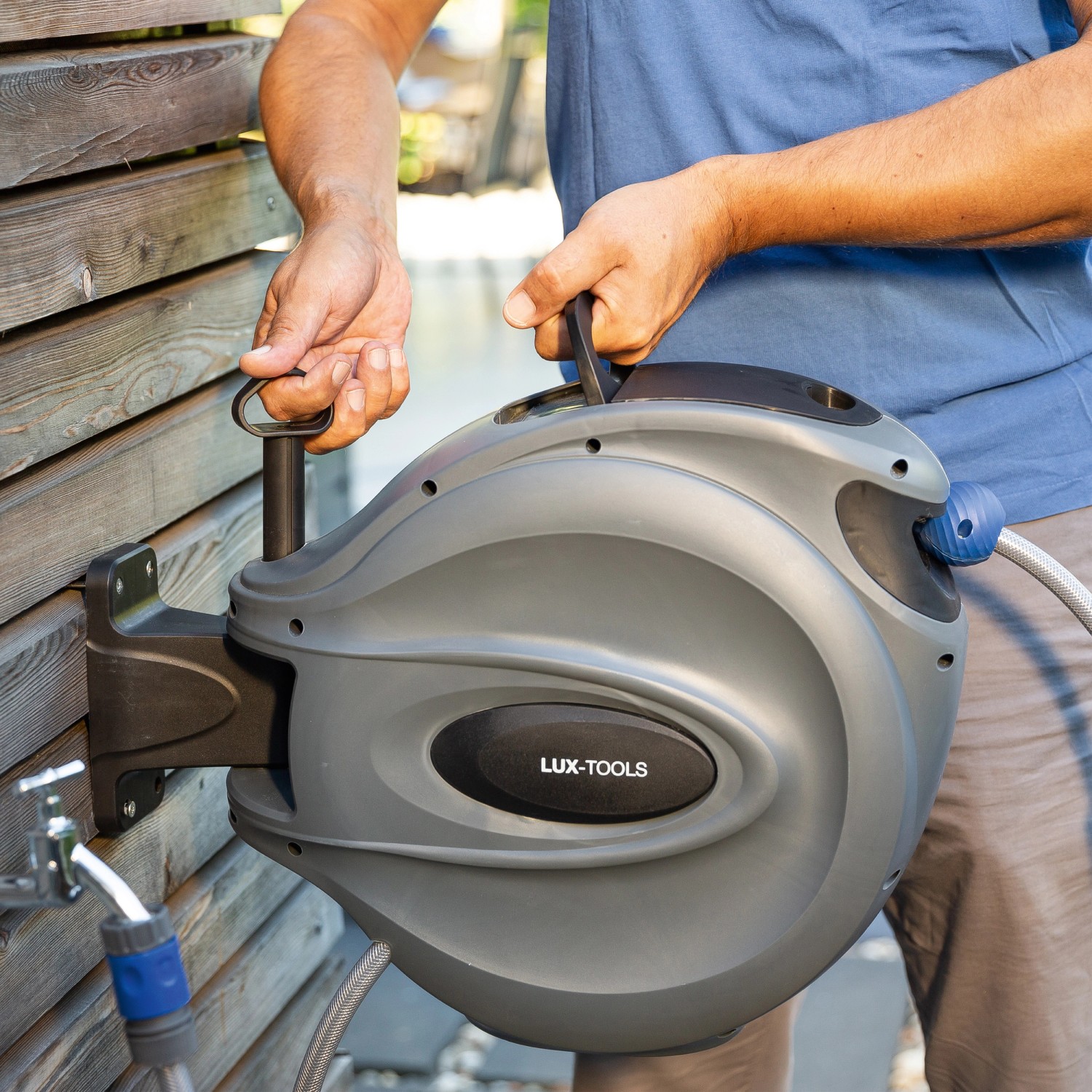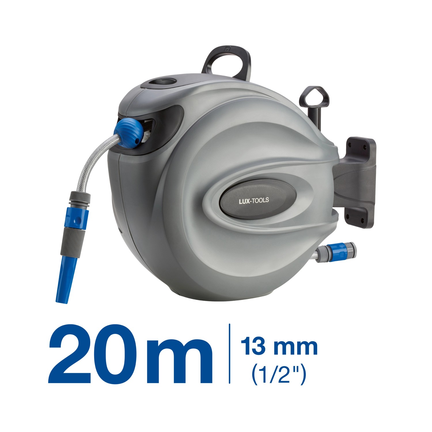 Nástenný box LUX-TOOLS ASR-20 je dodávaný vrátane 20 m dlhej PVC záhradnej hadice s priemerom 13 mm (1/2") a montážneho návodu.