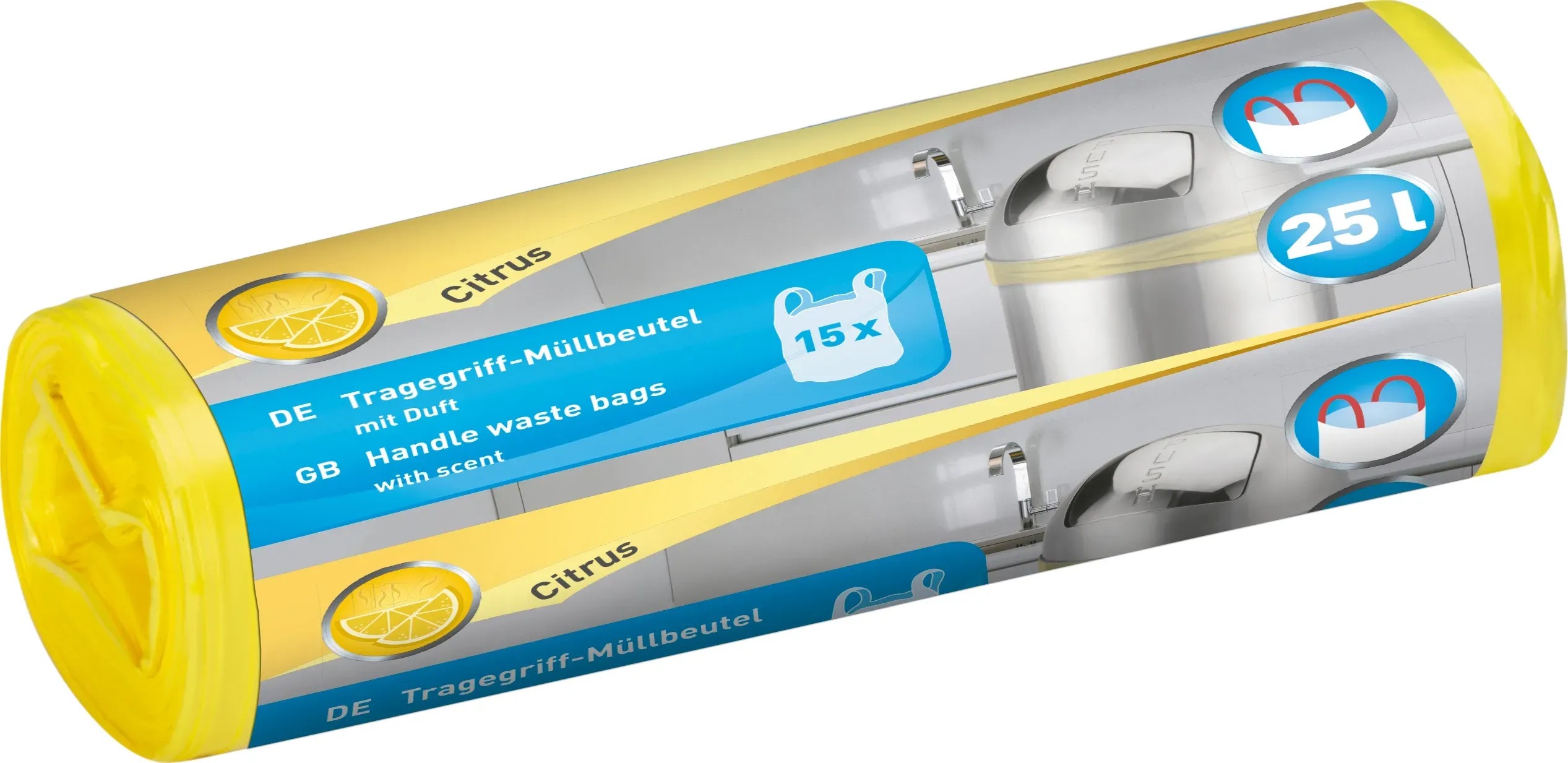 Na likvidáciu komunálneho odpadu použite aromatizované vrece na odpad. Je vyrobené zo žltého plastu odolného proti roztrhnutiu s citrónovou vôňou. S objemom 25 l sa hodí do mnohých odpadkových košov v domácnosti aj kancelárii. Uši zjednodušujú zatváranie a likvidáciu plného vreca na odpad. Balenie obsahuje 15 ks navinutých na kotúči.