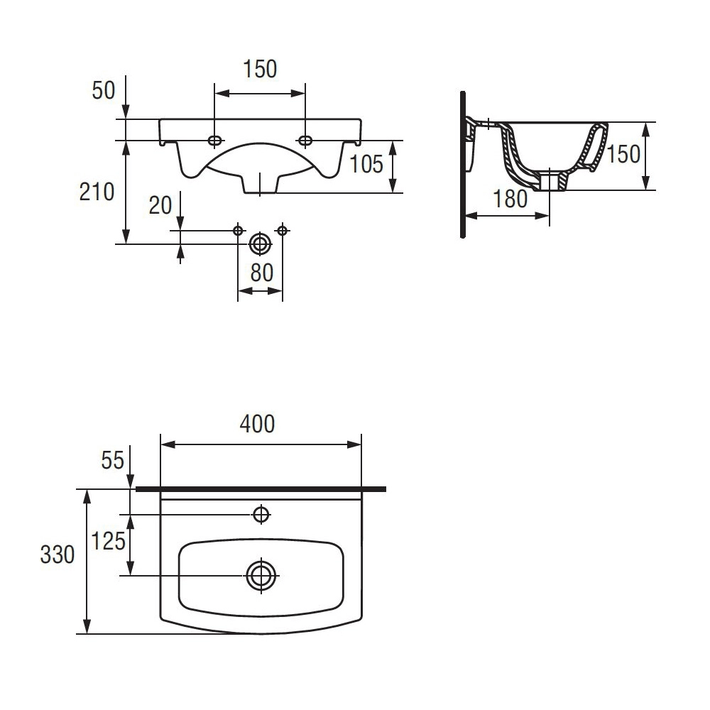 Nábytkové umývadlo CERSANIA NEW 40 s otvorom na batériu. Možno kombinovať so skrinkou z radu BIANCO, OLIVIA, MELAR alebo upevniť k stene s chrómovým sifónom. Cena bez batérie.