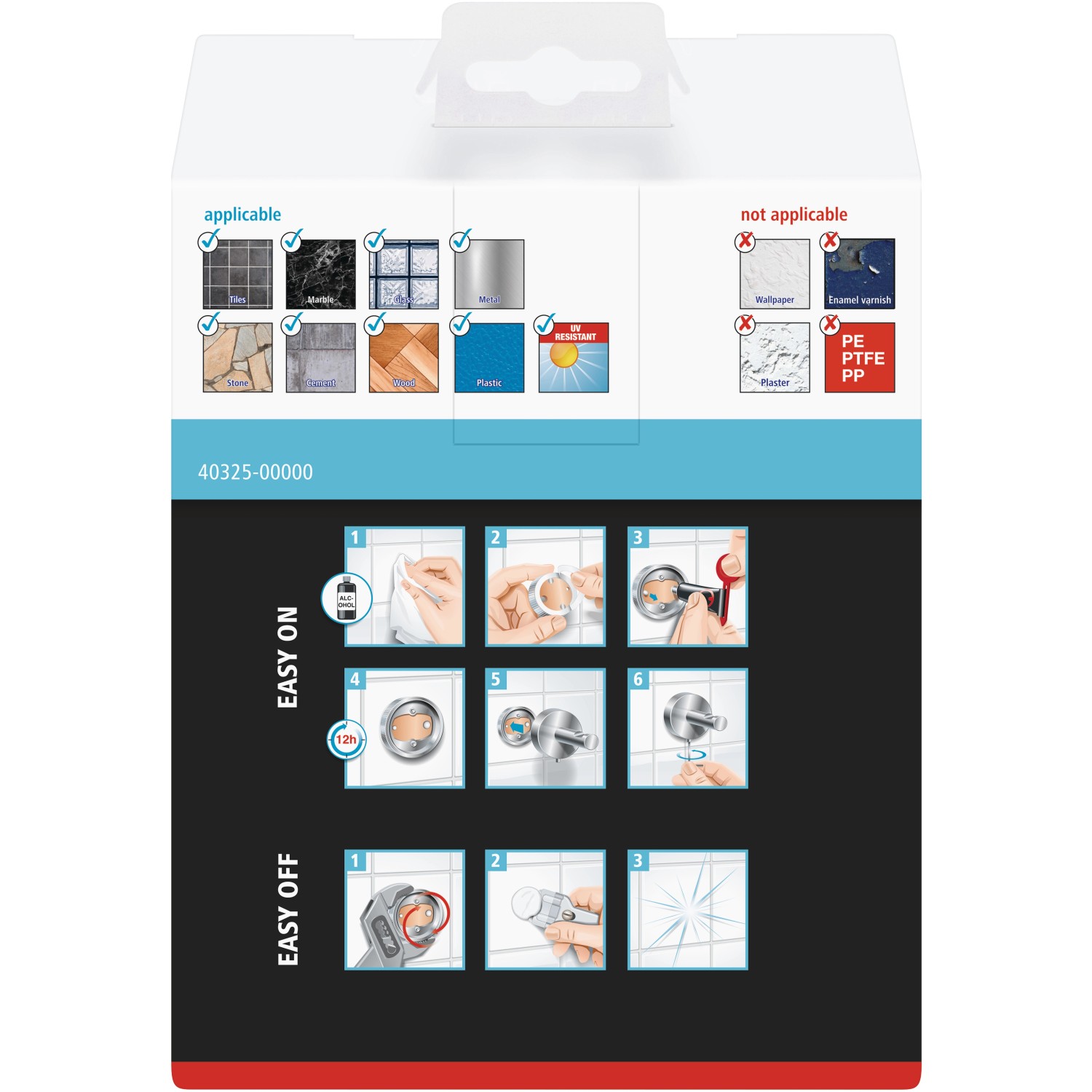 Držiak je možné umiestniť kamkoľvek vďaka lepiacemu montážnemu riešeniu, ktoré vyžaduje 12 hodín zasychania. Steny alebo obklady zostanú nepoškodené, pretože vŕtanie nie je potrebné. Držiak na fén je možné kedykoľvek odstrániť bez toho, aby po ňom zostali nejaké stopy. S novým adaptérom BK20 môže byť znovu pripevnený na inom mieste.
