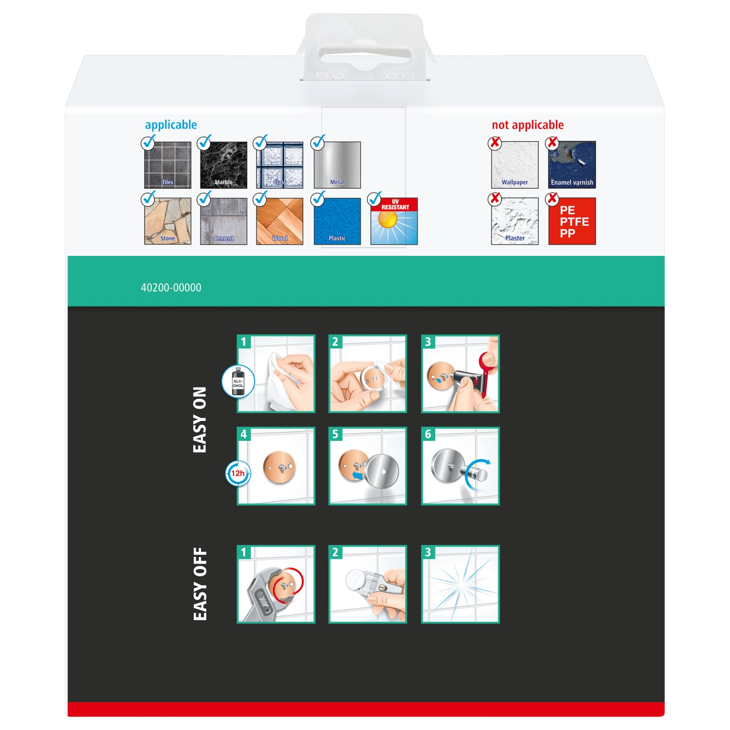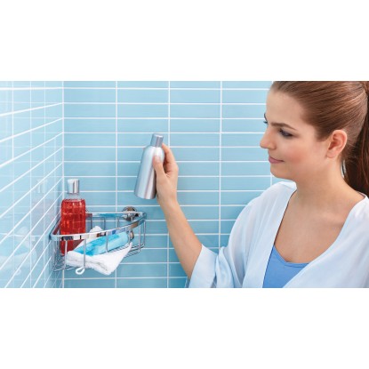 Zaschnutie lepidla vyžaduje 12 hodín. Na pripevnenie nie je potrebné vŕtanie, takže steny a obklady zostanú nepoškodené. Košík môžete kedykoľvek znova rýchlo zložiť bez toho, aby po ňom zostali akékoľvek stopy. Pomocou nového adaptéra BK43-2 nie je vôbec žiadny problém pripevniť poličku do sprchovacieho kúta na iné miesto.