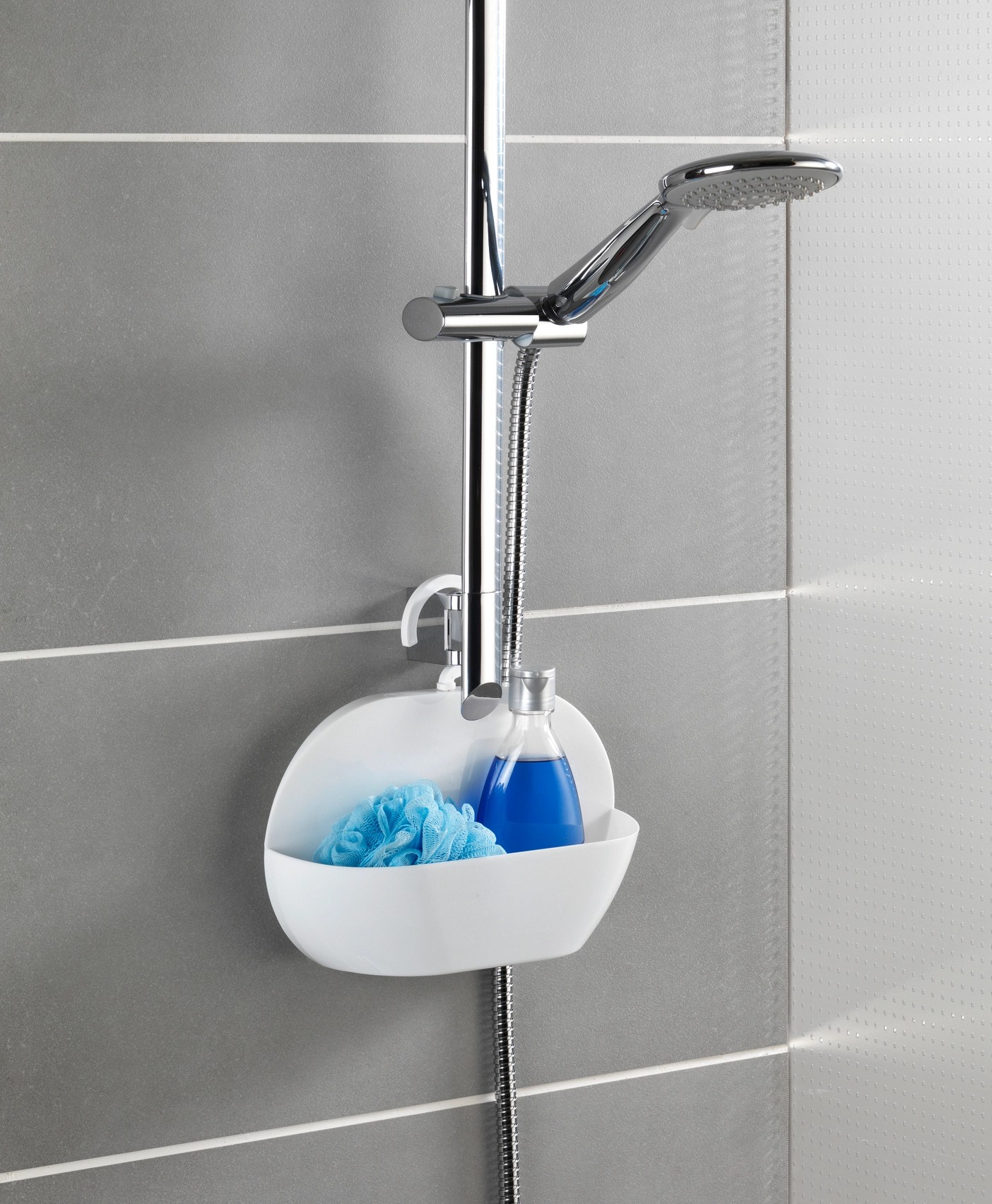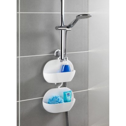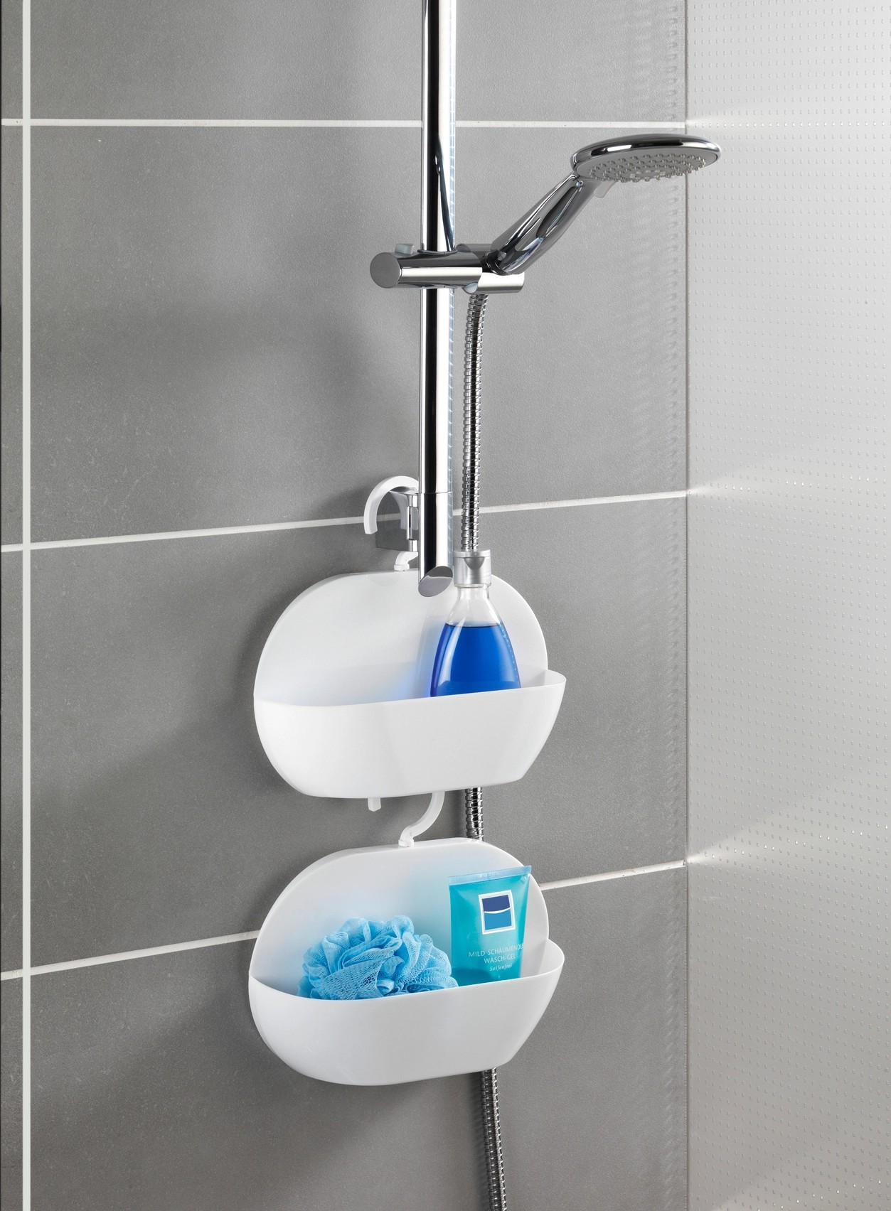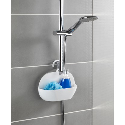 Wenko košík do sprchy Cocktail v čiernej farbe je moderný odkladací box s pohyblivým háčikom na zavesenie, napr. na stenu sprchy, vaňovú batériu alebo sprchu.