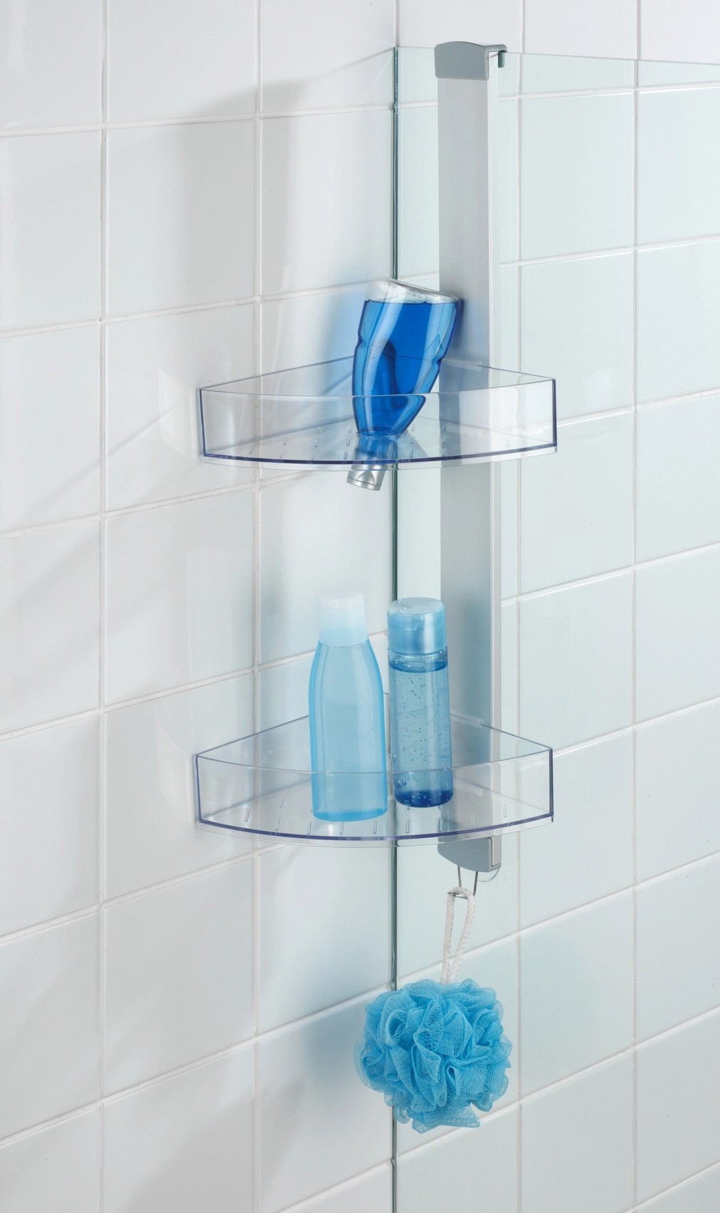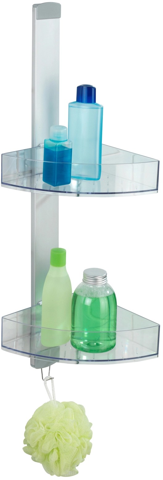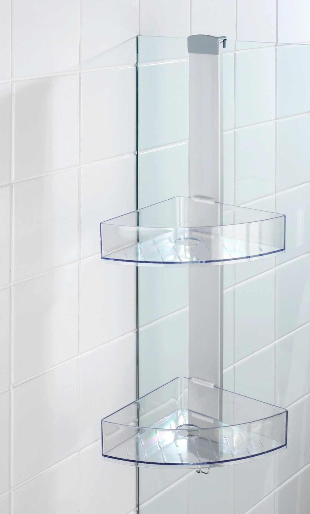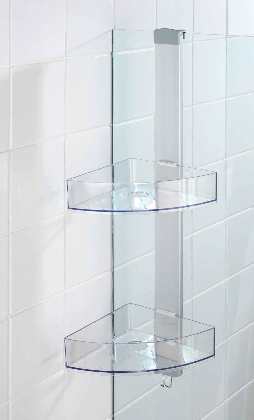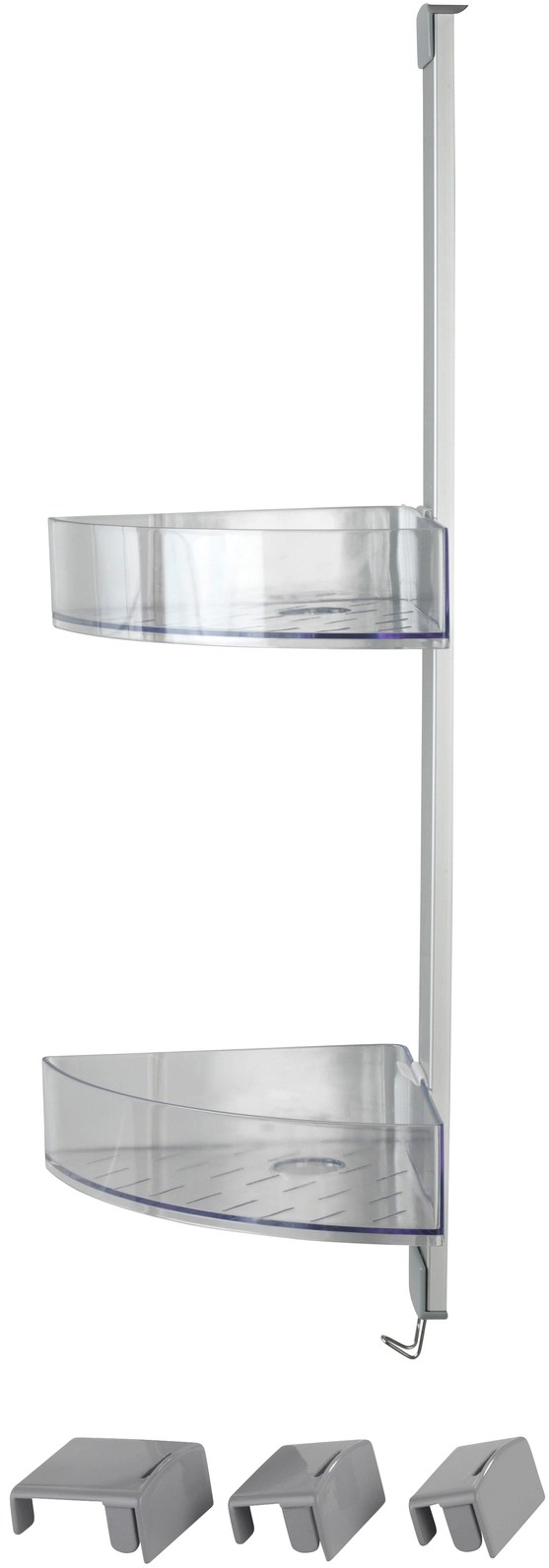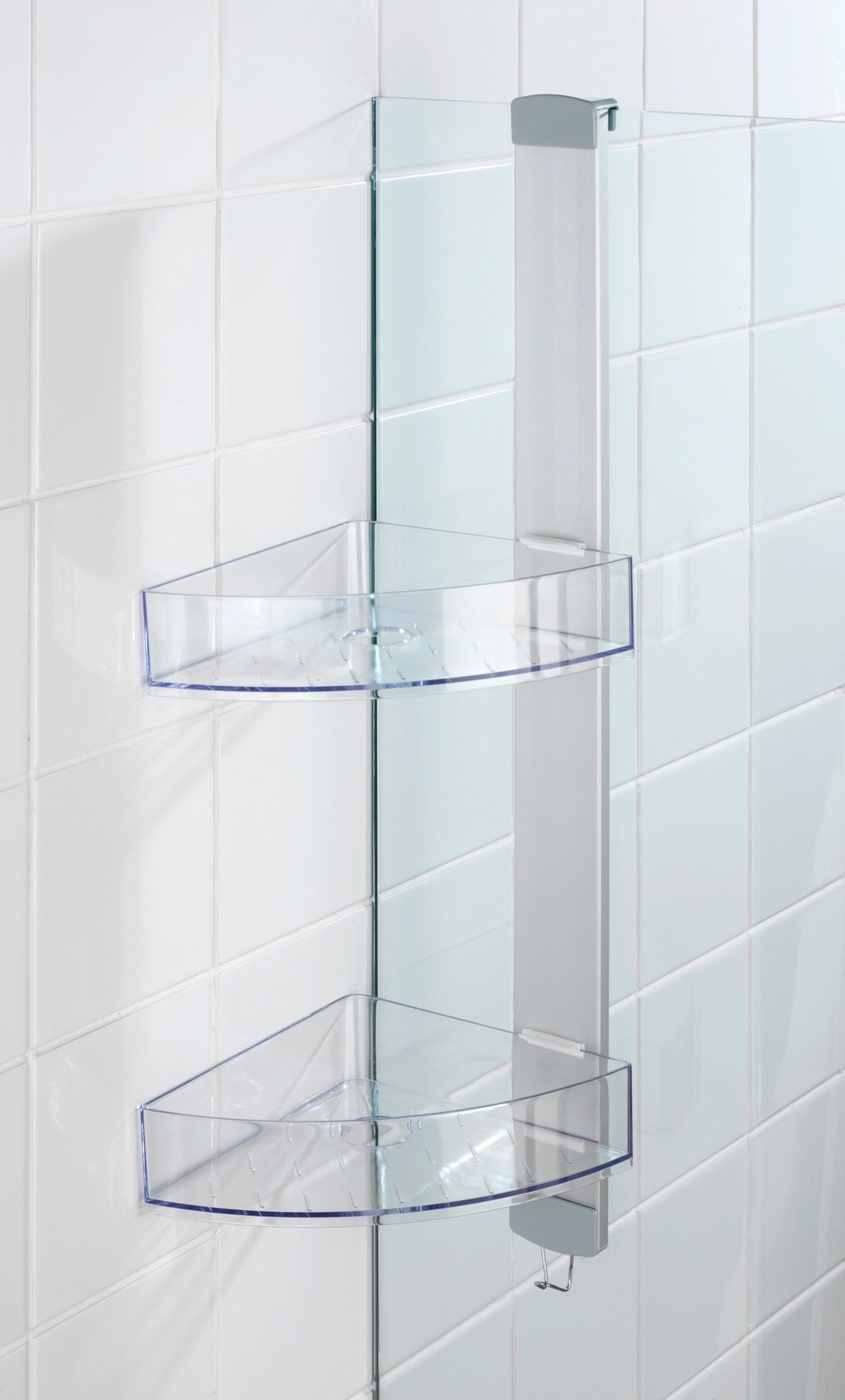 Dve pohodlné poličky ponúkajú veľa priestoru na sprchové doplnky a šampón, mydlo alebo špongia sú s ním vždy poruke. Poličky posúvateľné do strany majú otvor pre šampóny, ktoré sa ukladajú hore dnom. Otvory zároveň slúžia na odtok vody. Na integrovaný háčik z ušľachtilej ocele sa dajú úsporne zavesiť umývacie rukavice, sprchové špongie alebo kefky na ruky. Súčasťou balenia sú adaptéry na zavesenie na falc dverí s veľkosťou 11 mm, ako aj skrutky a hmoždinky na montáž na stenu.