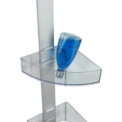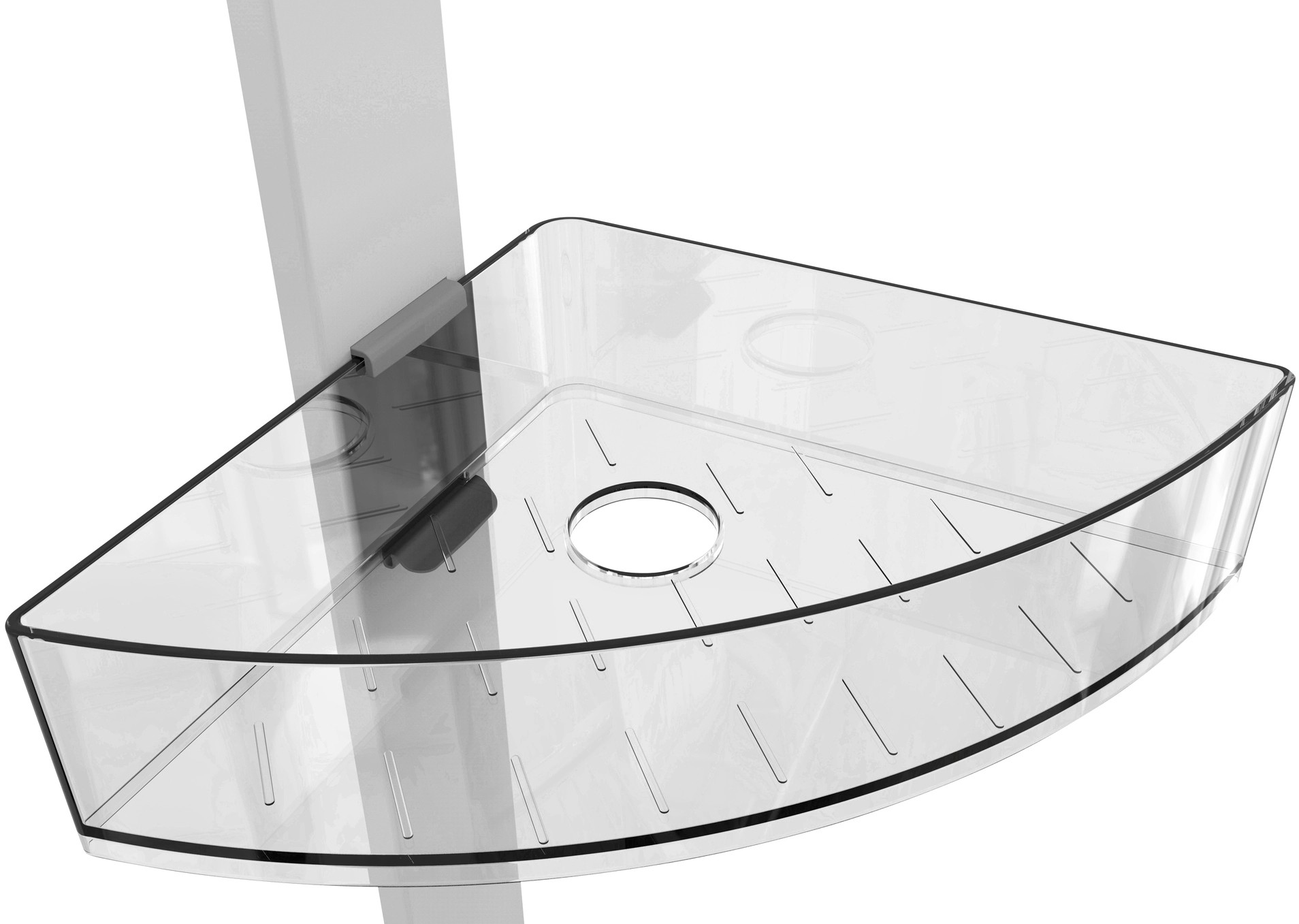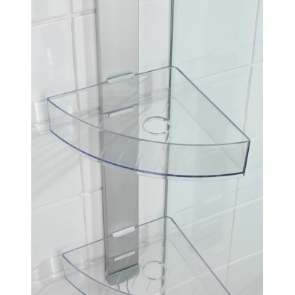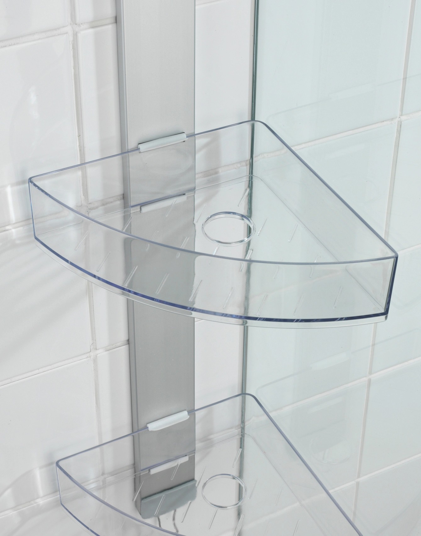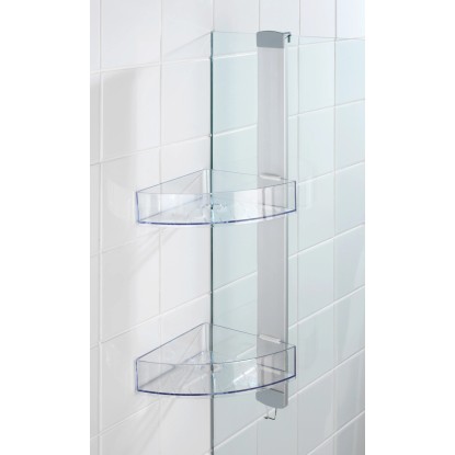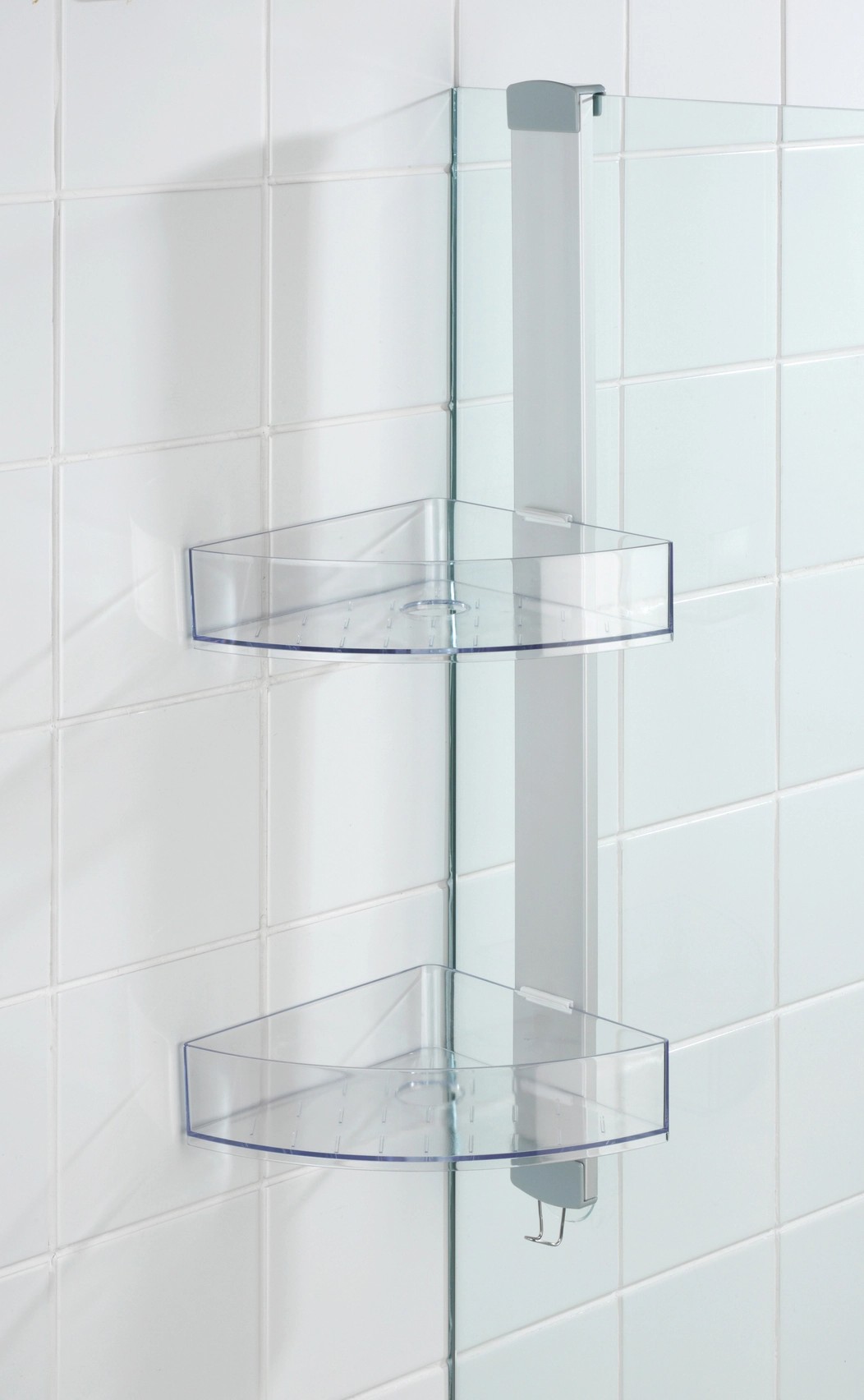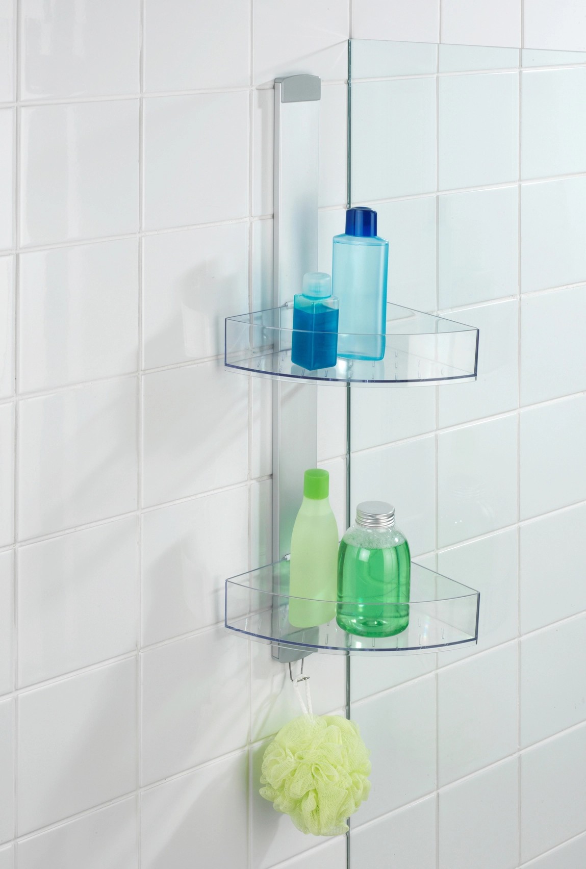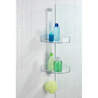 Dve pohodlné poličky ponúkajú veľa priestoru na sprchové doplnky a šampón, mydlo alebo špongia sú s ním vždy poruke. Poličky posúvateľné do strany majú otvor pre šampóny, ktoré sa ukladajú hore dnom. Otvory zároveň slúžia na odtok vody. Na integrovaný háčik z ušľachtilej ocele sa dajú úsporne zavesiť umývacie rukavice, sprchové špongie alebo kefky na ruky. Súčasťou balenia sú adaptéry na zavesenie na falc dverí s veľkosťou 11 mm, ako aj skrutky a hmoždinky na montáž na stenu.