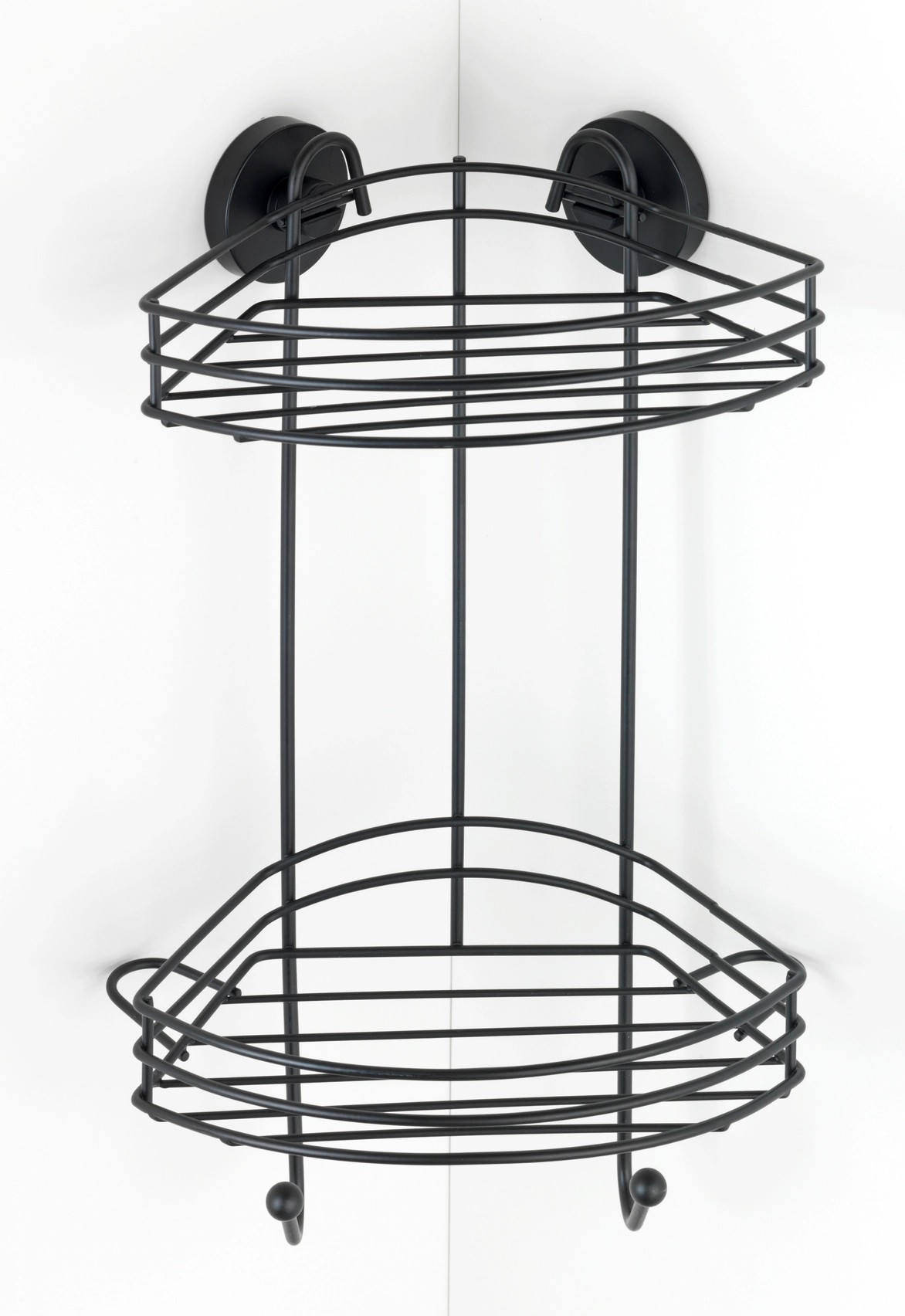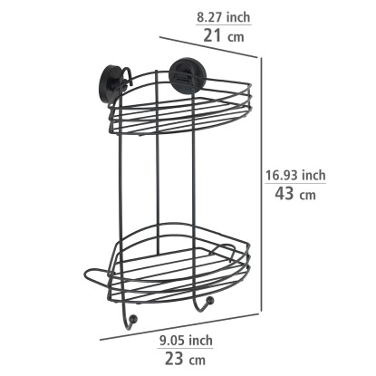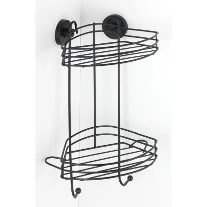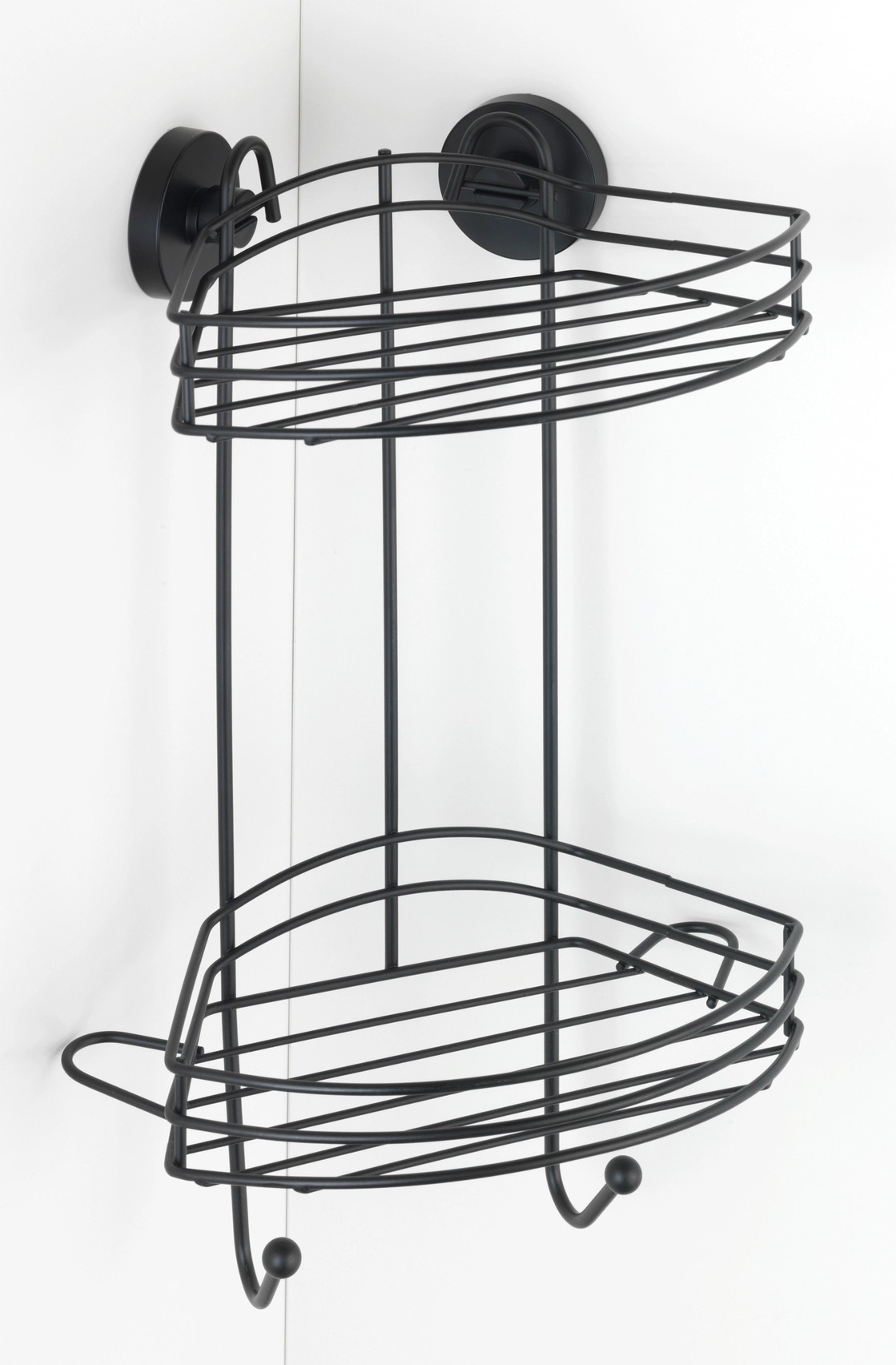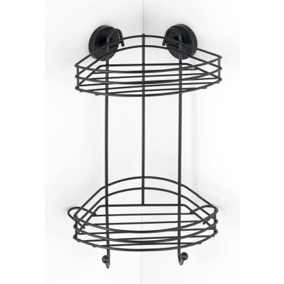 Wenko Rohová 2-poschodová nástenná polica Vacuum-Loc Bari čierna 24 x 43 x 21 cm