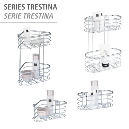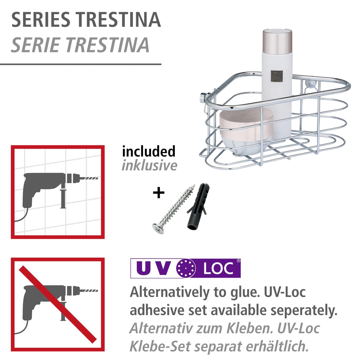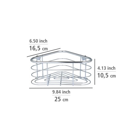 Wenko Rohová kúpeľňová polica Trestina, lesklá strieborná, 25 x 10,5 x 16,5 cm