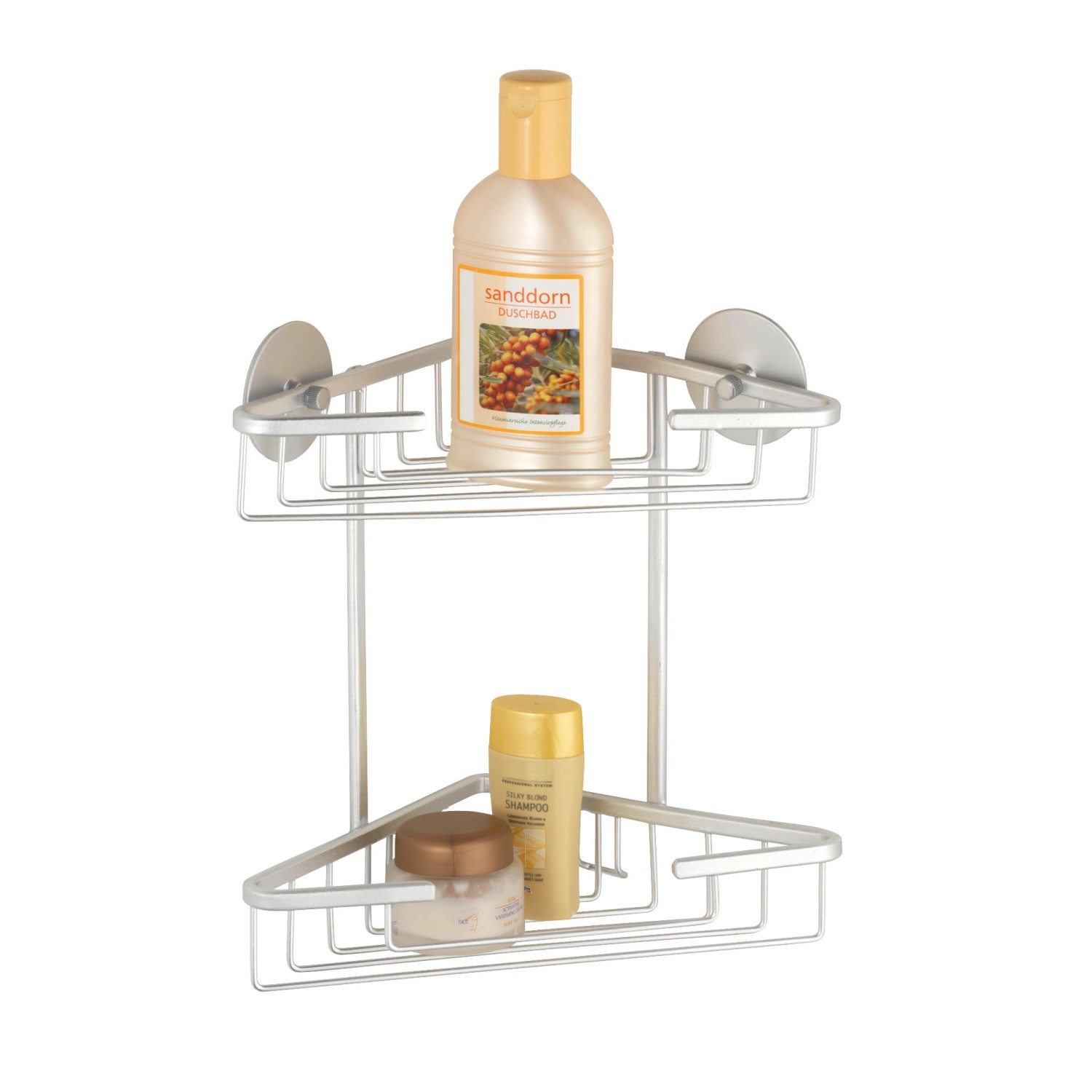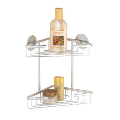 Dekoratívna Turbo-Loc rohová polička z hliníka je veľmi ľahká a vyznačuje sa ušľachtilým dizajnom vďaka svojmu kvalitnému matnému povrchu. So svojimi 2 priehradkami ponúka veľa miesta na vaše pomôcky a nezaberá veľa miesta v rohu.