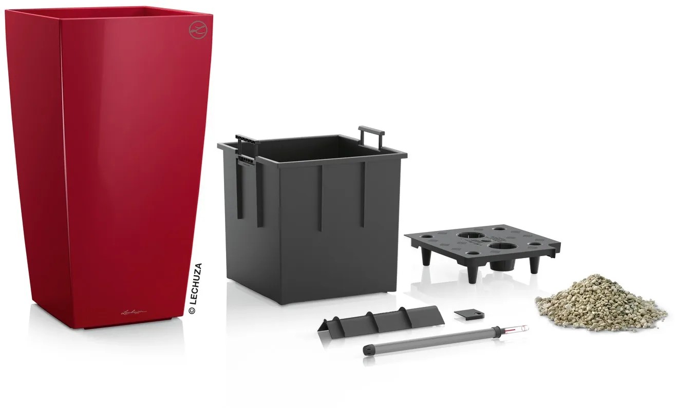 Lechuza Kvetináč Cubico Premium 40, červená vysoko lesklá, 40 x 40 x 75 cm