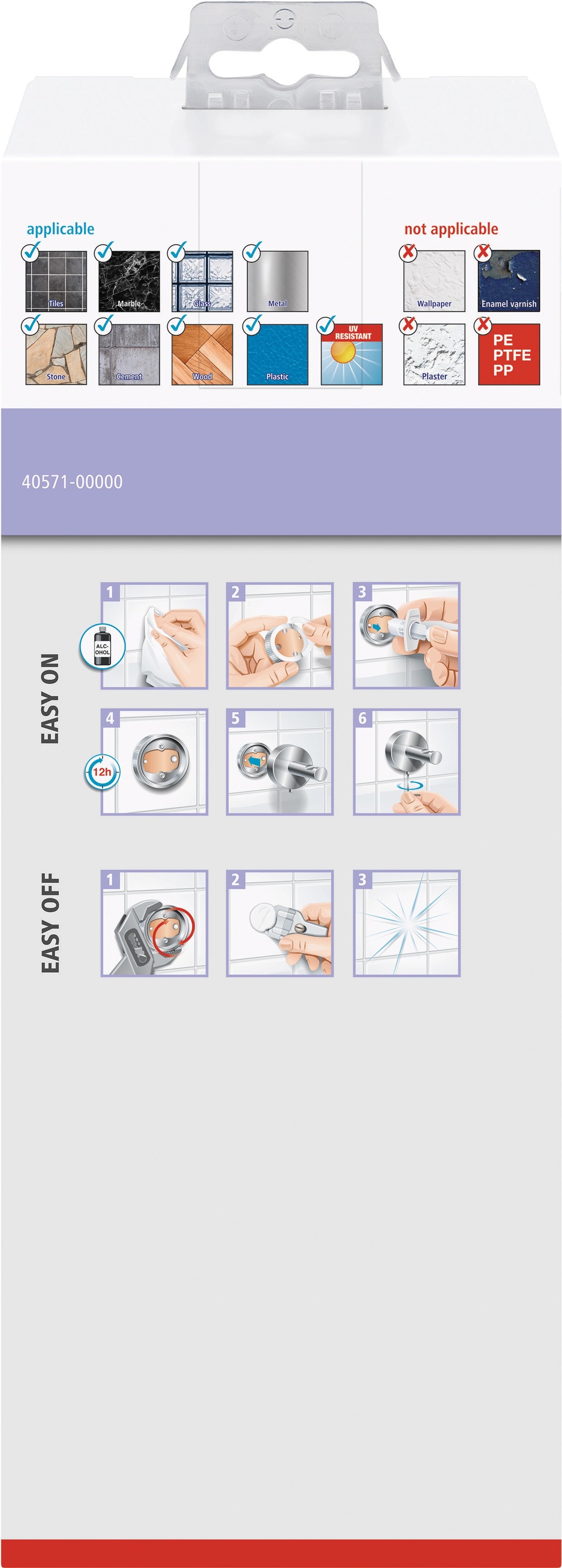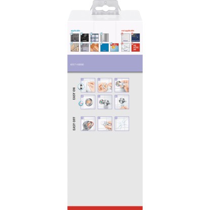 Držiak je možné aj bez vŕtania bezpečne pripevniť k stene pomocou lepiaceho riešenia tesa a tiež ho možno ľahko bez stôp odstrániť. Na montáž nie sú potrebné manuálne zručnosti. Po odstránení možnosť opätovného využitia s novým adaptérom BK20 (predáva sa aj samostatne).