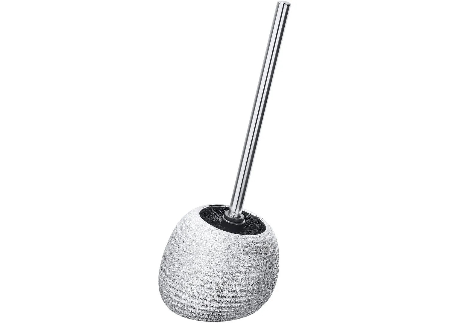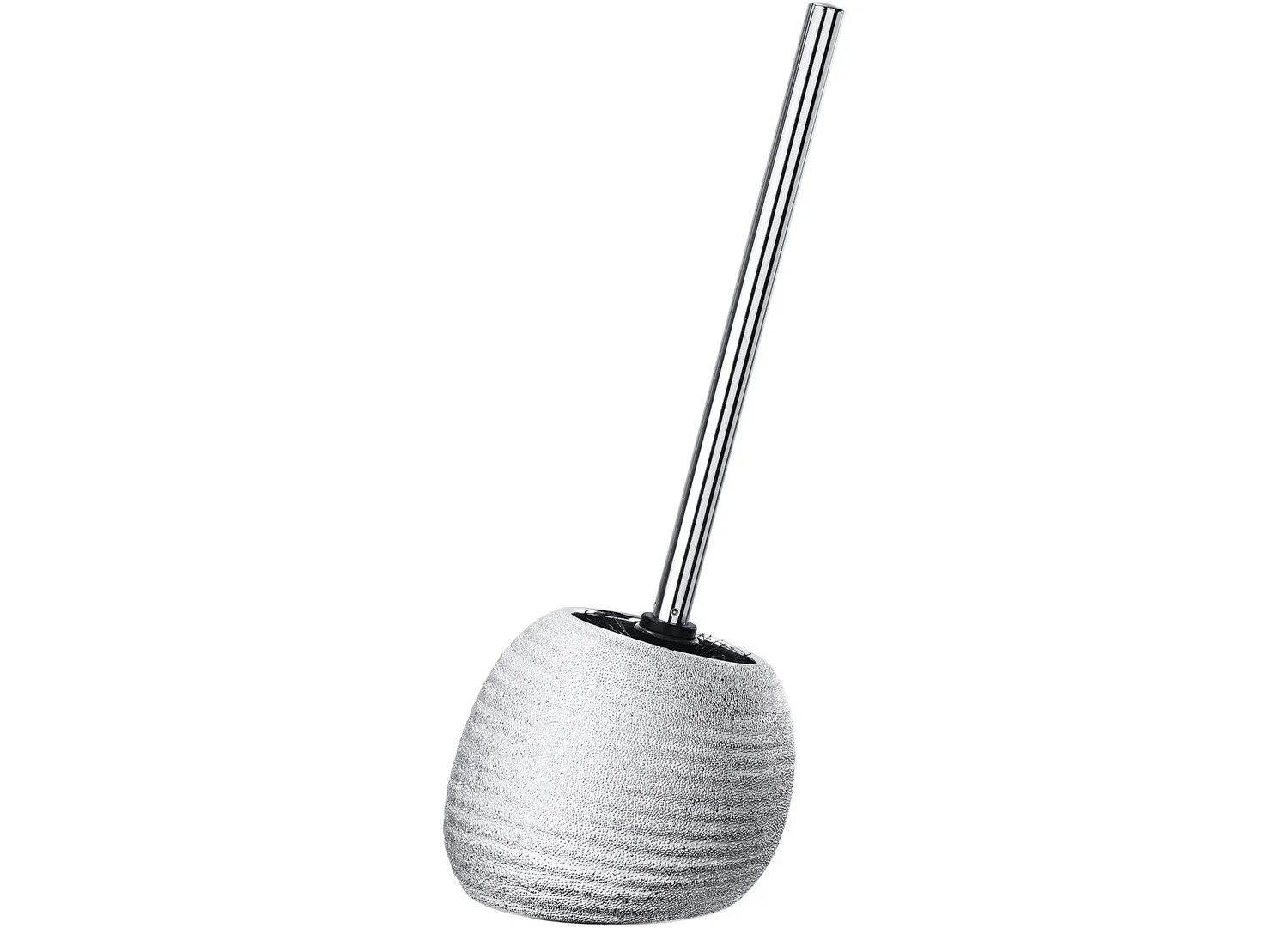 Dekoratívna Wenko WC súprava Polaris Juwel v striebornej farbe je vyrobená z kvalitnej keramiky a je ideálne vhodná ako otvorený držiak na WC kefu do kúpeľne a WC pre hostí. So štýlovou striebornou farbou so štruktúrovaným povrchom upúta všetky pohľady vo vašej kúpeľni alebo WC pre hostí. WC kefa je vybavená čiernou vymeniteľnou hlavou s priemerom 7,5 cm.