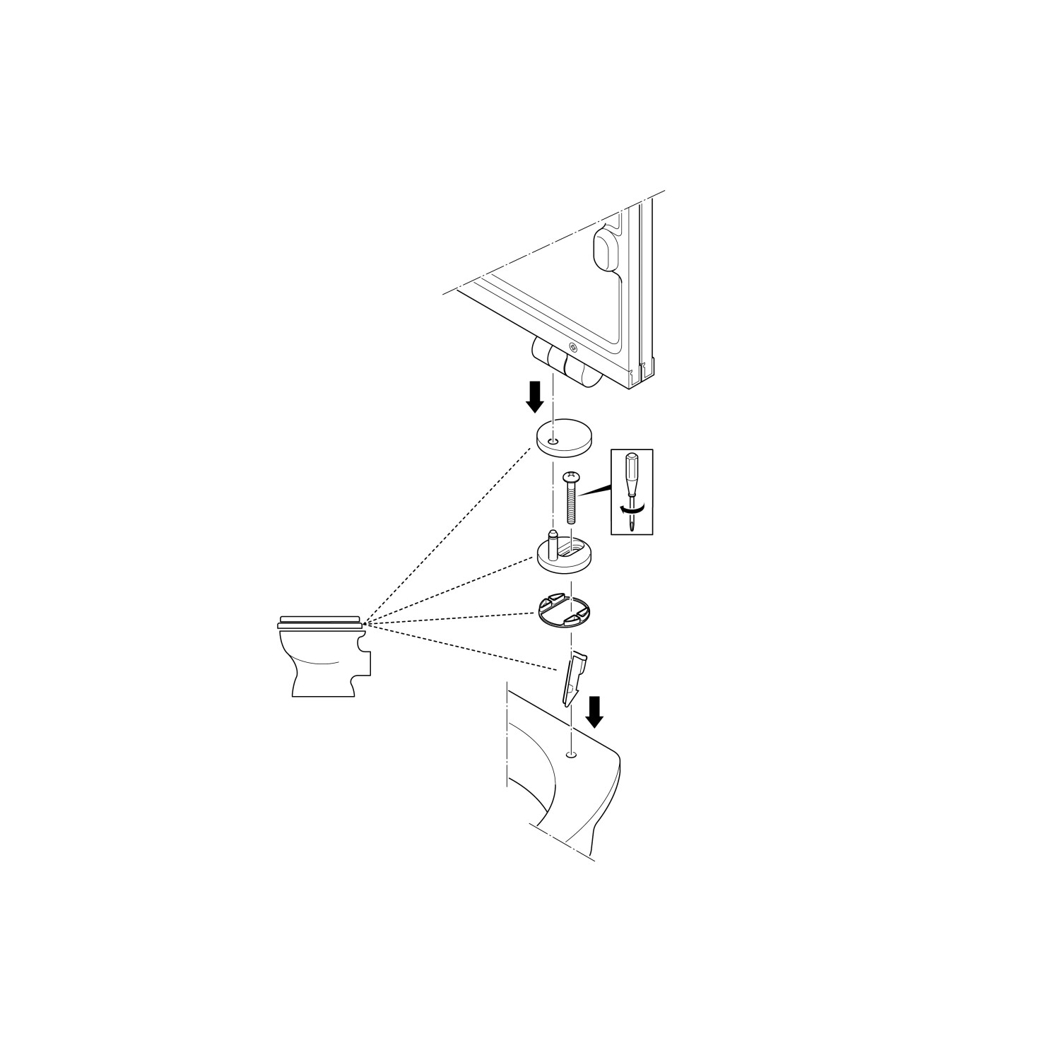 WC sedátko ľahko pripevníte bez špecializovaného náradia. Skrutky utiahnete pomocou skrutkovača (nie je súčasťou balenia, k dispozícii samostatne).