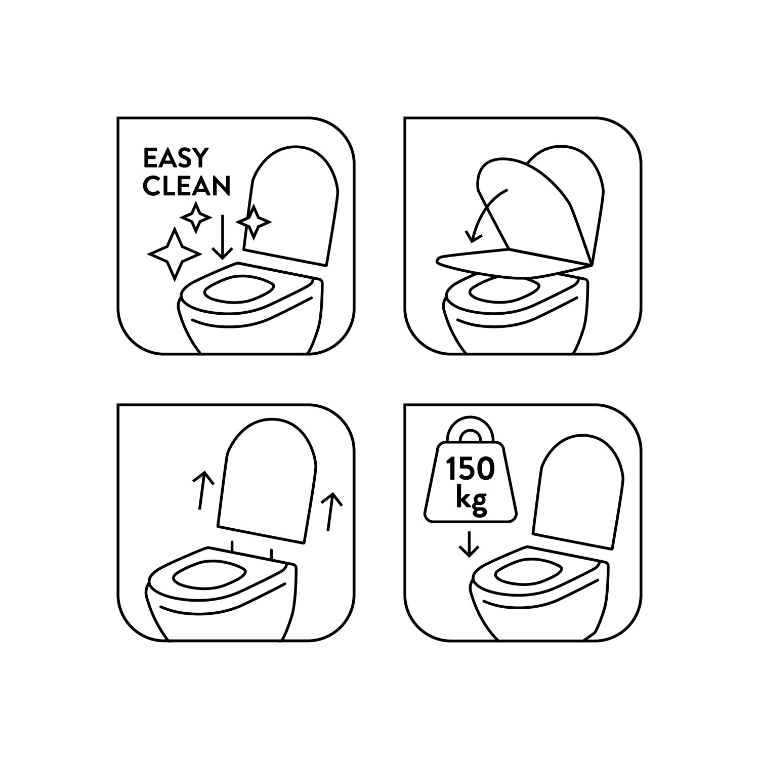 Aby záchodová doštička a veko pri sklápaní nerachotili, sú obe časti vybavené systémom pomalého zatvárania (SoftClose). Robustné plastové závesy zaisťujú bezpečné a trvalé spojenie medzi oboma časťami.