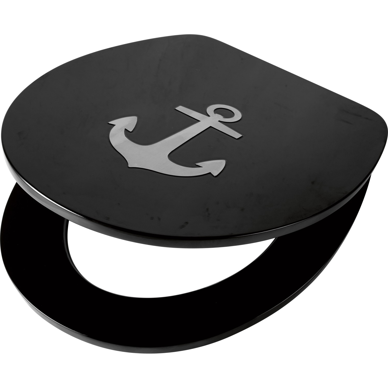 baliv WC sedátko Suapure s dreveným jadrom, SoftClose, čierna/kotva