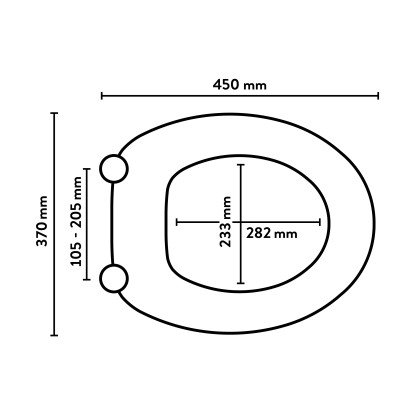 Kvalitné WC sedátka baliv Moros s robustným jadrom z MDF. Vďaka použitým materiálom je sedadlo veľmi robustné a má dlhú životnosť. Na ľahké čistenie má WC sedátko vysoko lesklý a odolný povrch. Na spodnej strane je WC sedátko vybavené dorazmi, ktoré ho chránia pred poškodením. Robustné závesy zaisťujú trvalé spojenie oboch dielov. WC sedátko má vonkajší rozmer 370 x 450 mm, vnútorný rozmer 233 x 282 mm a rozstup 105-205 mm.