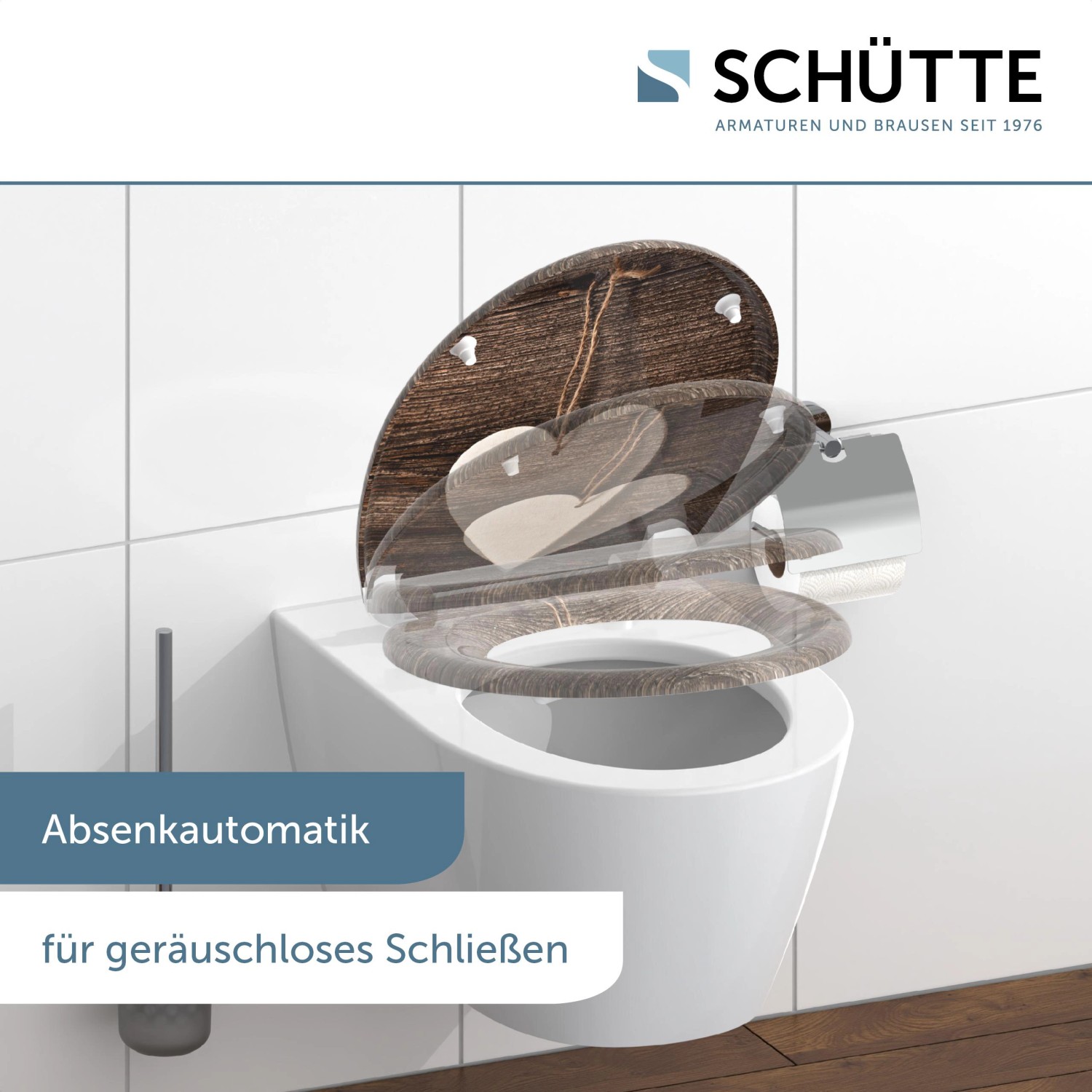Vysokokvalitná Eisl WC doska z duroplastu Wood Heart s automatickým sklápaním a rýchlouzáverom má štandardnú veľkosť a hodí sa takmer na všetky bežné WC misy. Vďaka systému jemného zatvárania môžete veko sklopiť bez nepríjemného hluku. Okrem toho je vybavená technológiou s rýchlouzáverom, vďaka čomu sa WC doska dá jednoducho uvoľniť. Navyše má lepiace podložky ako poistku. Vďaka duroplastu s extrémne tvrdým povrchom je WC doska nerozbitná a odolná proti poškriabaniu. Neporézny povrch umožňuje jednoduché a hygienické čistenie. Eisl WC doska z duroplastu sa dá veľmi jednoducho namontovať a dodáva sa pripravená na montáž s inštalačným materiálom. Okrem toho disponuje prestaviteľnou upevňovacou technikou, ktorá umožňuje variabilnú montáž.
