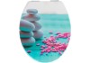 Pokoj a harmóniu vyžaruje motív Wenko WC sedatka Meditation z duroplastu s automatickým sklápaním. Veko WC sedáka zdobí upokojujúce naskladané kamene na pozadí v tyrkysovej farbe. Sedáko s bielym doskom prepožičia kúpeľni alebo WC pre hostí upokojujúce atmosféru, vďaka svojmu motívu s ružovými oblázkami zároveň pôsobí ako neprehliadnuteľný pútač pozornosti.