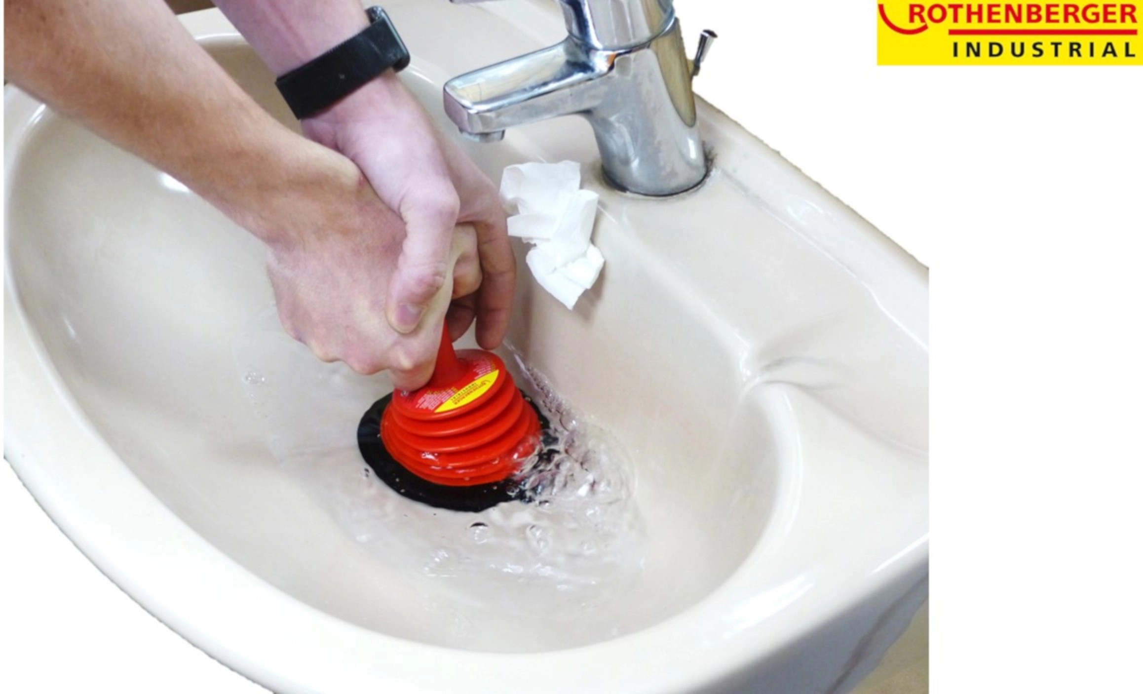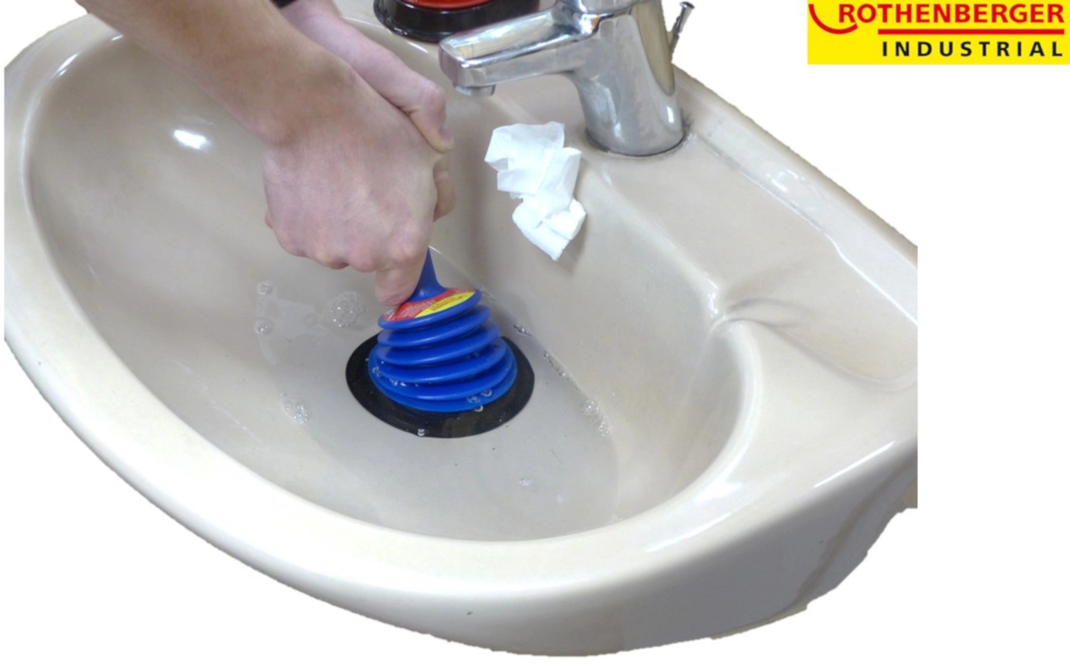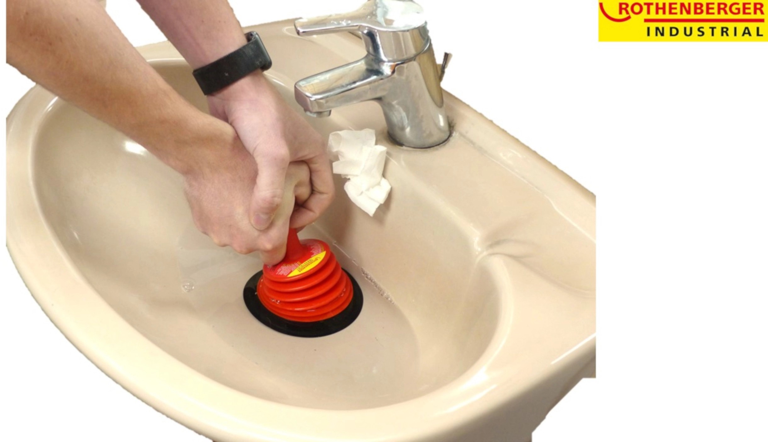 Zvon na odpad Rothenberger RoPü Mini je ideálny na rýchle čistenie upchatého drezu, sprchovej vaničky, drezu a odtoku vane.
