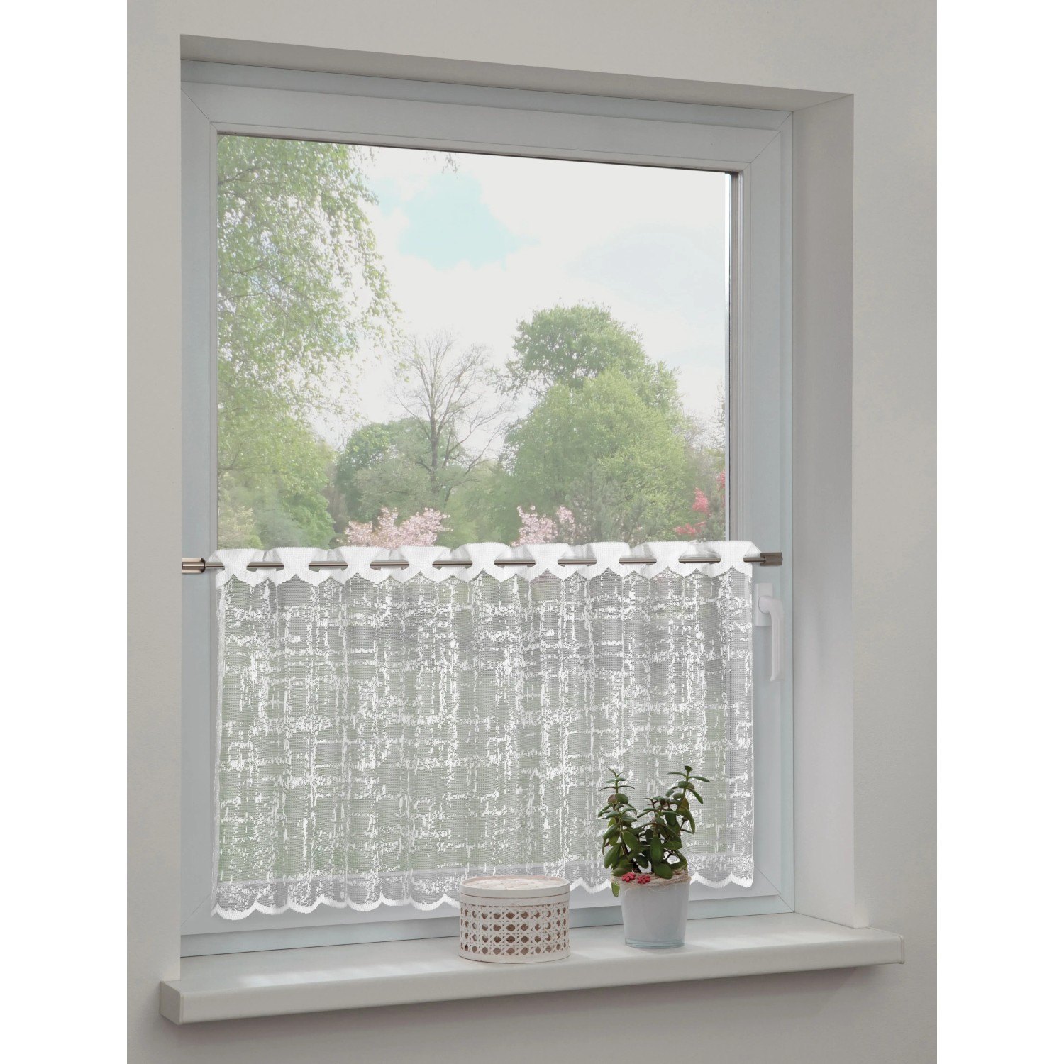 Vytvorte vo svojich izbách krásnu atmosféru pomocou nadčasovej vitrážovej záclony. Zapadne do vášho domova a je možné ju kombinovať s inými závesmi. Popustite uzdu svojej kreativite a vneste do svojho domova dotyk prírody s krásnym designom. Vďaka praktickým skrytým pútkam je možné ho bez väčšej námahy namontovať. Zakrytím spodnej časti okna ponúka táto záclona dodatočnú ochranu pred zvedavými pohľadmi.
