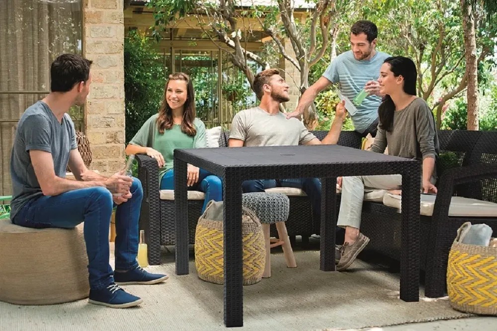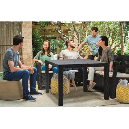 KETER Melody Quartet je praktický a elegantný stôl s povrchovou úpravou imitujúcou výplet z prírodného ratanu. Nábytok skvele vyplní menšie priestory domácnosti ako je balkón alebo malá záhradka, a tiež vydarene doplní interiérové usporiadanie. Vyrobené z plastu odolného voči UV žiareniu a poveternostným vplyvom, veľmi ľahko sa udržuje v čistote a zostavuje.