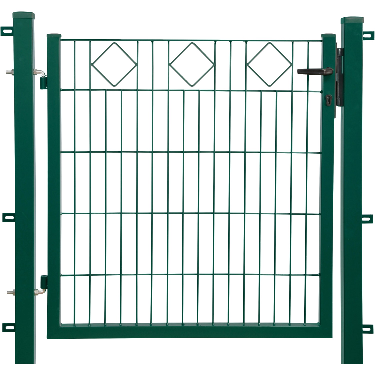 Dekoračné jednokrídlové bránky ponúkajú vhodný motív pre každú záhradu. Komfortná výška bránky 1 000 mm jasne ohraničí pozemky, ale ponechá dobrý výhľad cez plot a umožní podnetné diskusie pri plote. Výrobok sa hodí k príslušnej verzii dekoru
