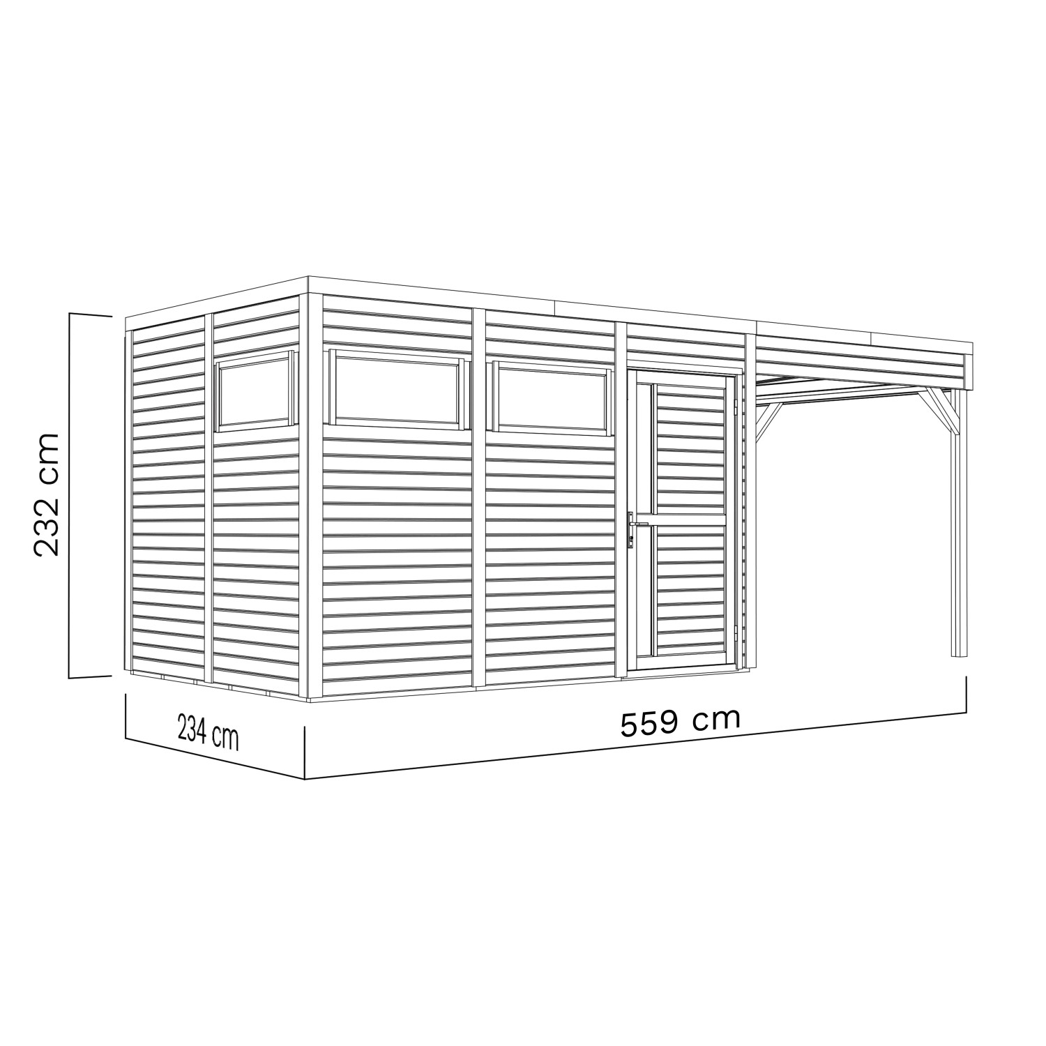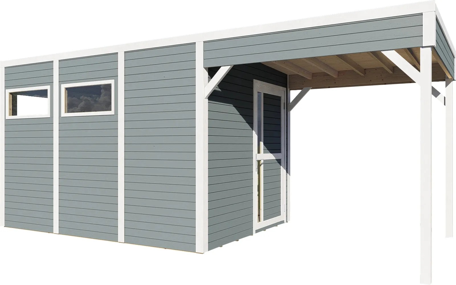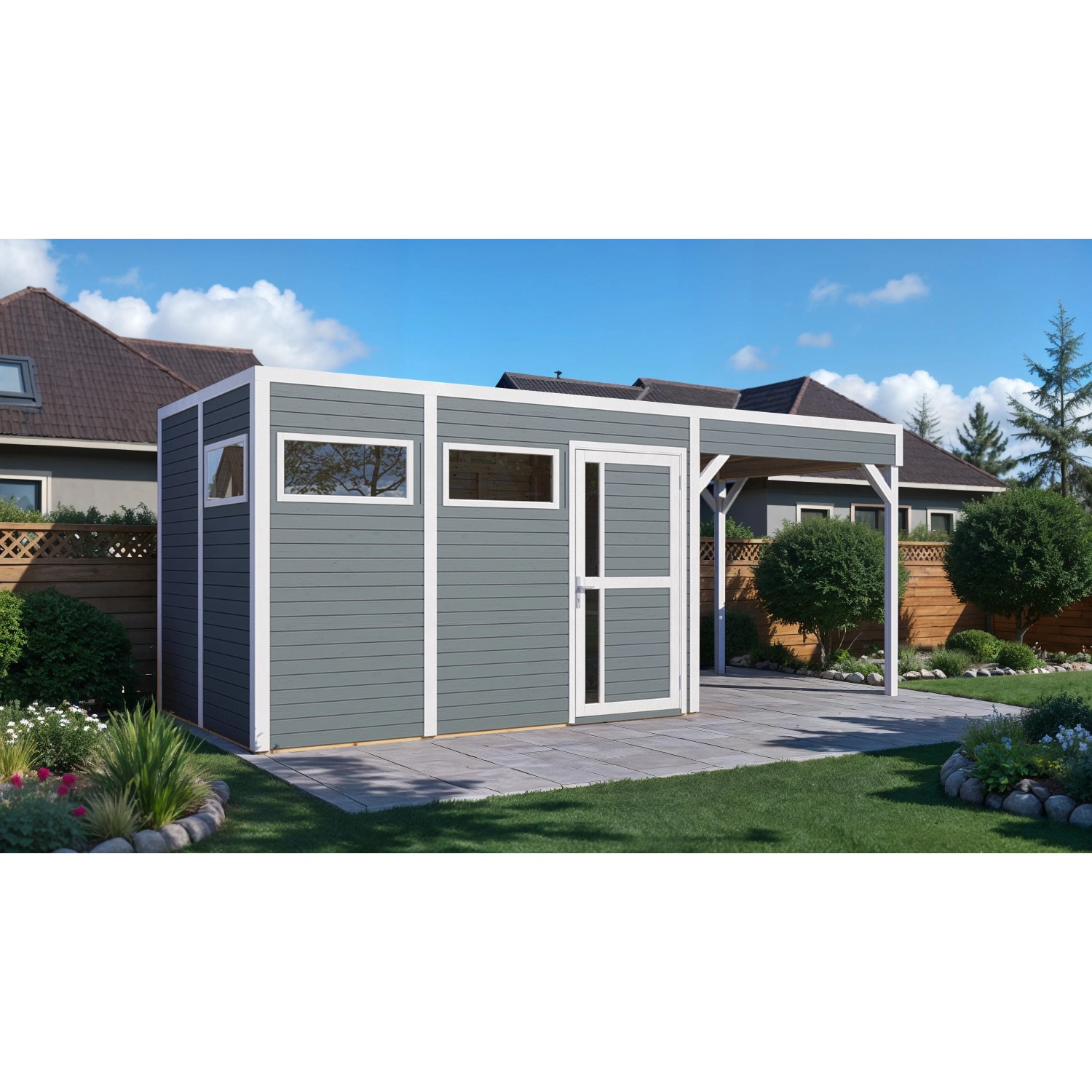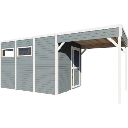 Bertilo Drevený domček na náradie Cubus 3 Lounge, svetlo sivá, 559 x 234 cm