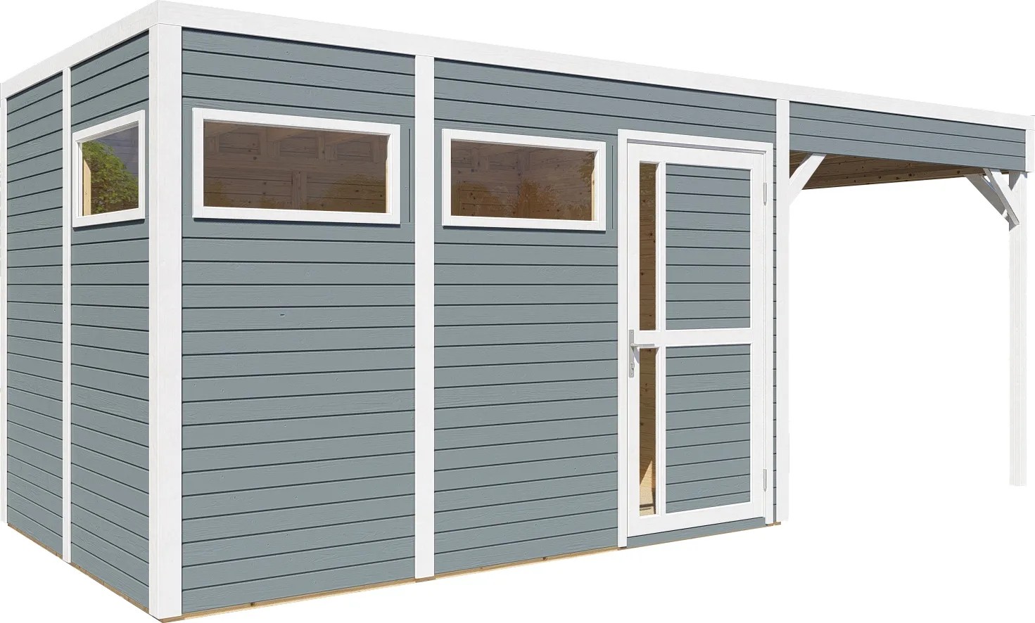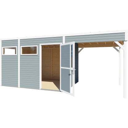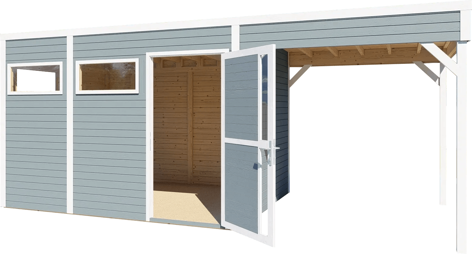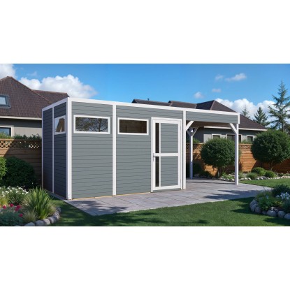 Bertilo Drevený domček na náradie Cubus 3 Lounge, svetlo sivá, 559 x 234 cm