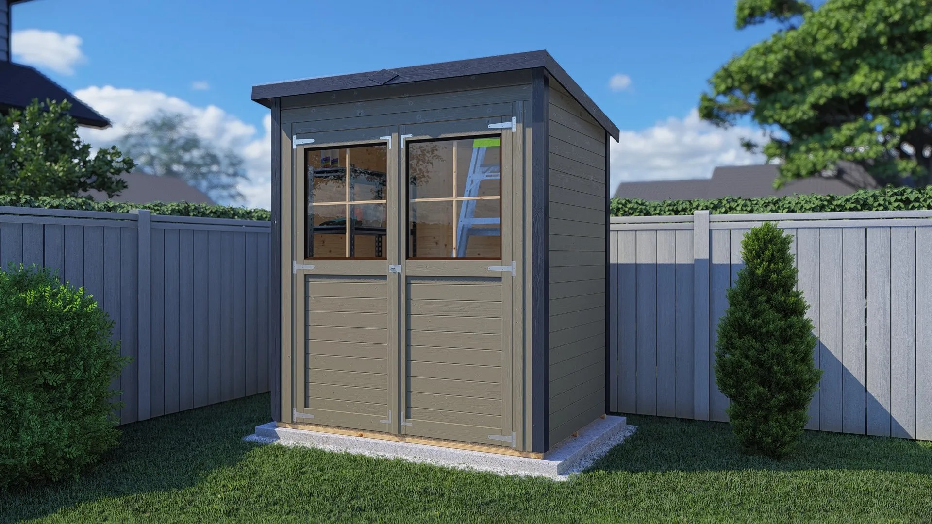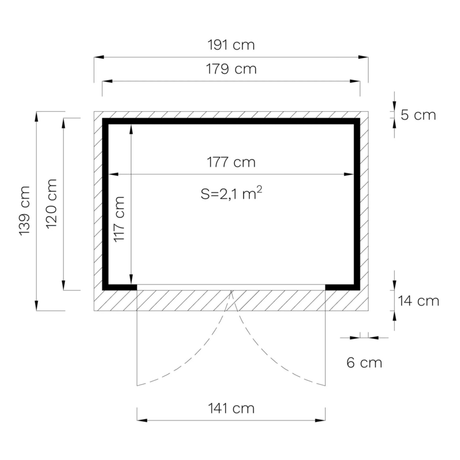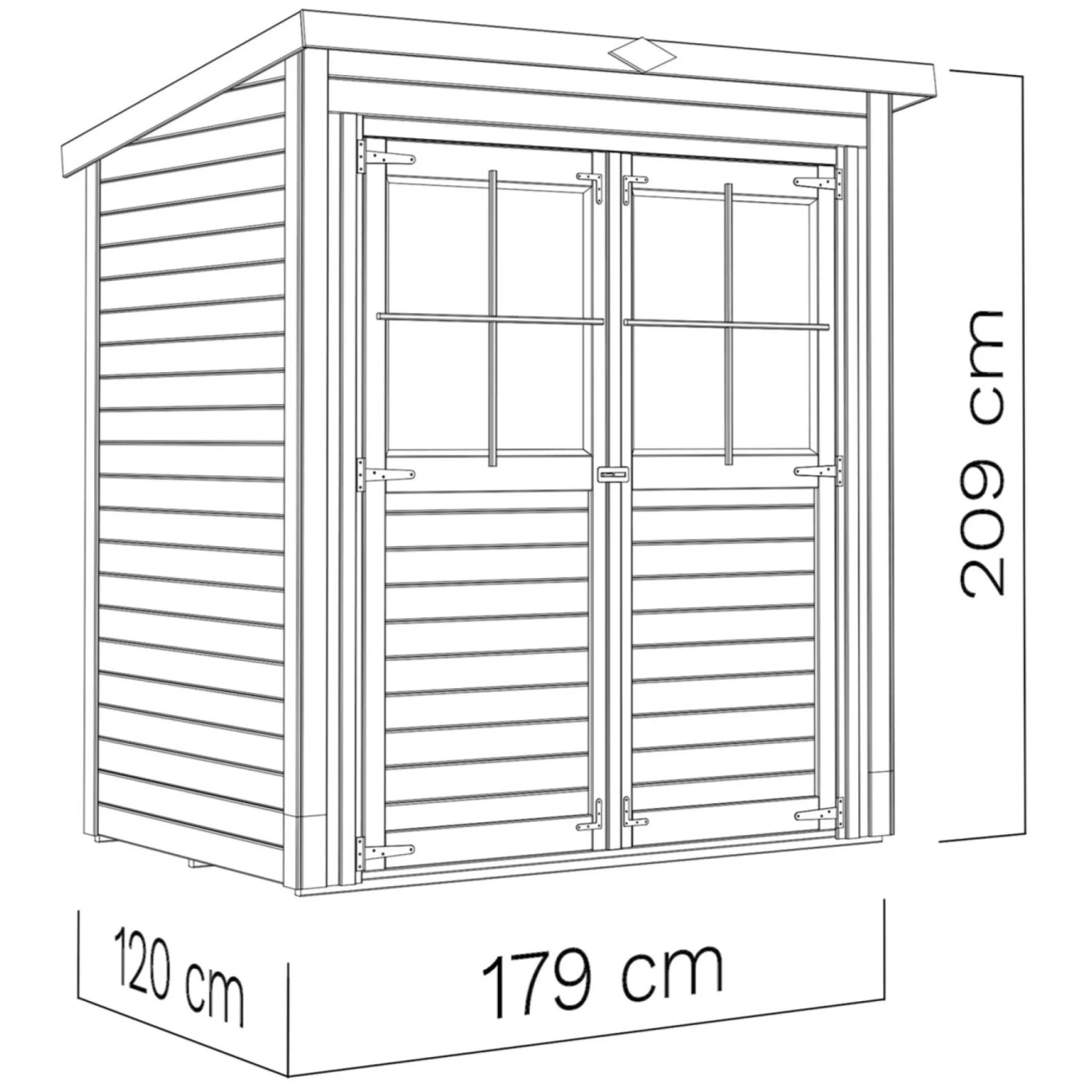 - Rozmery steny bez presahu strechy: 179 x 120 cm