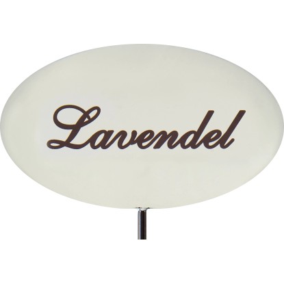 Bylinkový zápich slúži na opis bylín na záhonoch av kvetináčoch. Možno ho použiť v interiéri aj exteriéri. Má moderný vzhľad v smaltovanej bielej farbe a nápis levandule. Záhradný zápich je vyrobený z trvanlivého kovu. Má výšku 30 cm.
