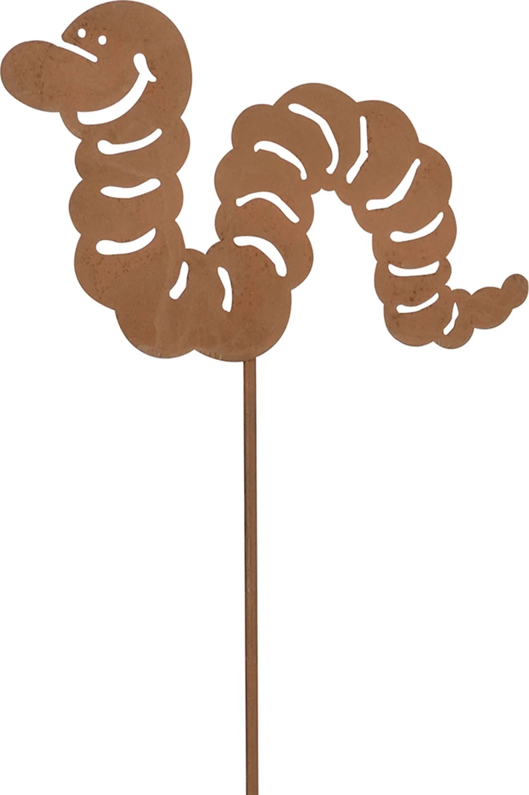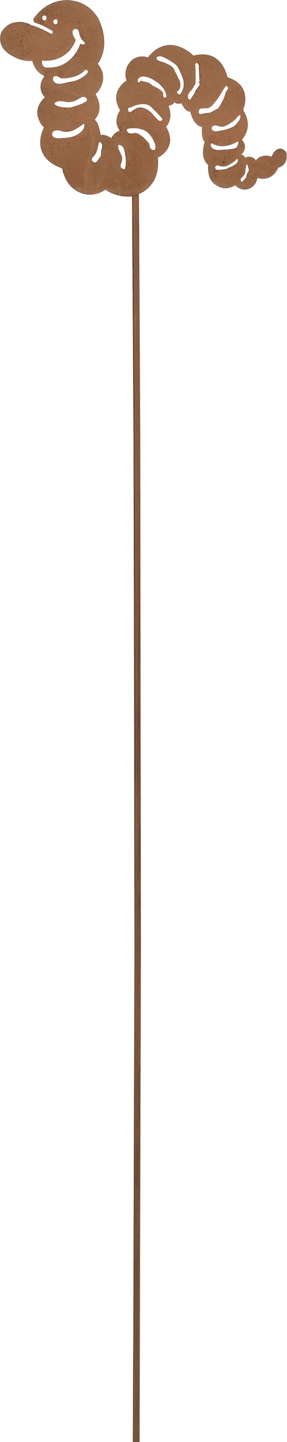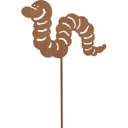Tento záhradný zápich je pekná dekorácia do kvetináčov a na záhony. Pôsobivo sa vyníma na balkóne, terase alebo pri vstupných priestoroch do domu. Má jednoduchý a moderný dizajn v podobe húsenice. Vďaka hrdzavému vzhľadu je možné záhradnú dekoráciu integrovať do mnohých štýlov záhrady. Je vhodný na použitie v interiéri aj exteriéri. Záhradný zápich je vyrobený z kvalitného kovu. Jeho rozmery sú 115 x 21 x 0,6 cm (V x Š x H).