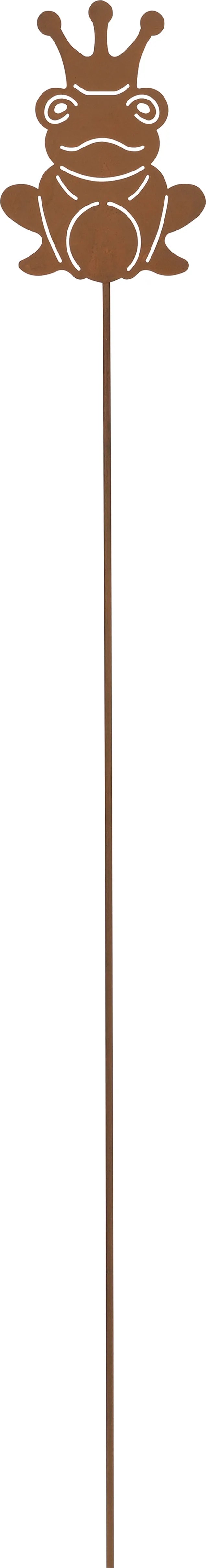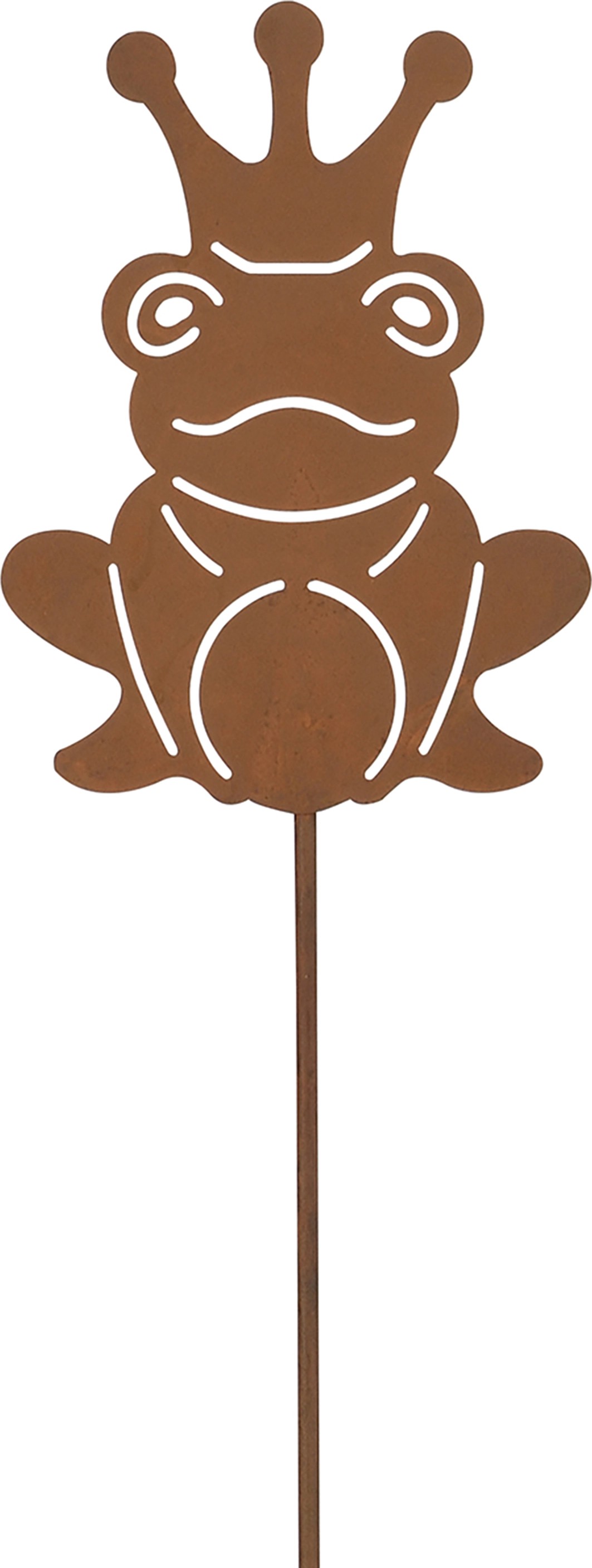 Tento záhradný zápich dodá farebné akcenty do záhonov a kvetináčov. Svojím pekným dizajnom žaby upúta pozornosť na balkóne, terase alebo záhrade. Vďaka jednoduchému vzhľadu v hrdzavej farbe sa záhradná dekorácia hodí do akéhokoľvek konceptu zariadenia. Možno ho použiť v interiéri aj exteriéri. Záhradný zápich je vyrobený kovu s dlhou životnosťou. Jeho rozmery sú 115 x 14 x 0,6 cm (V x Š x H).