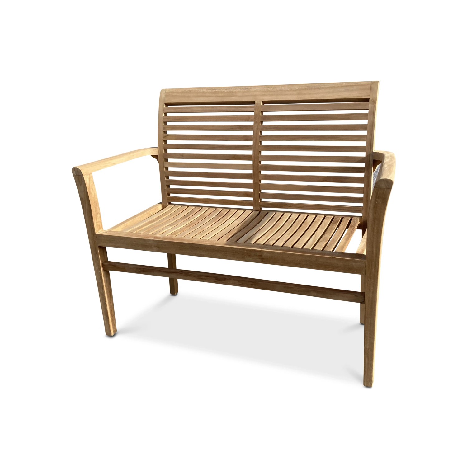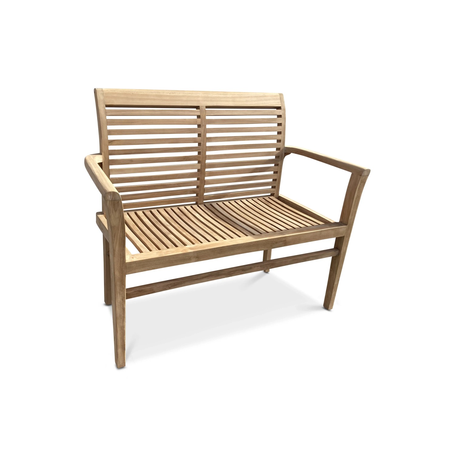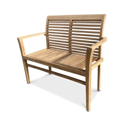 Záhradná lavica Stucking 115 cm stohovacia. 2-miestna lavica z teakového dreva. Stohovateľný dizajn záhradnej drevené lavice. Overená kvalita exotickej dreviny teak.