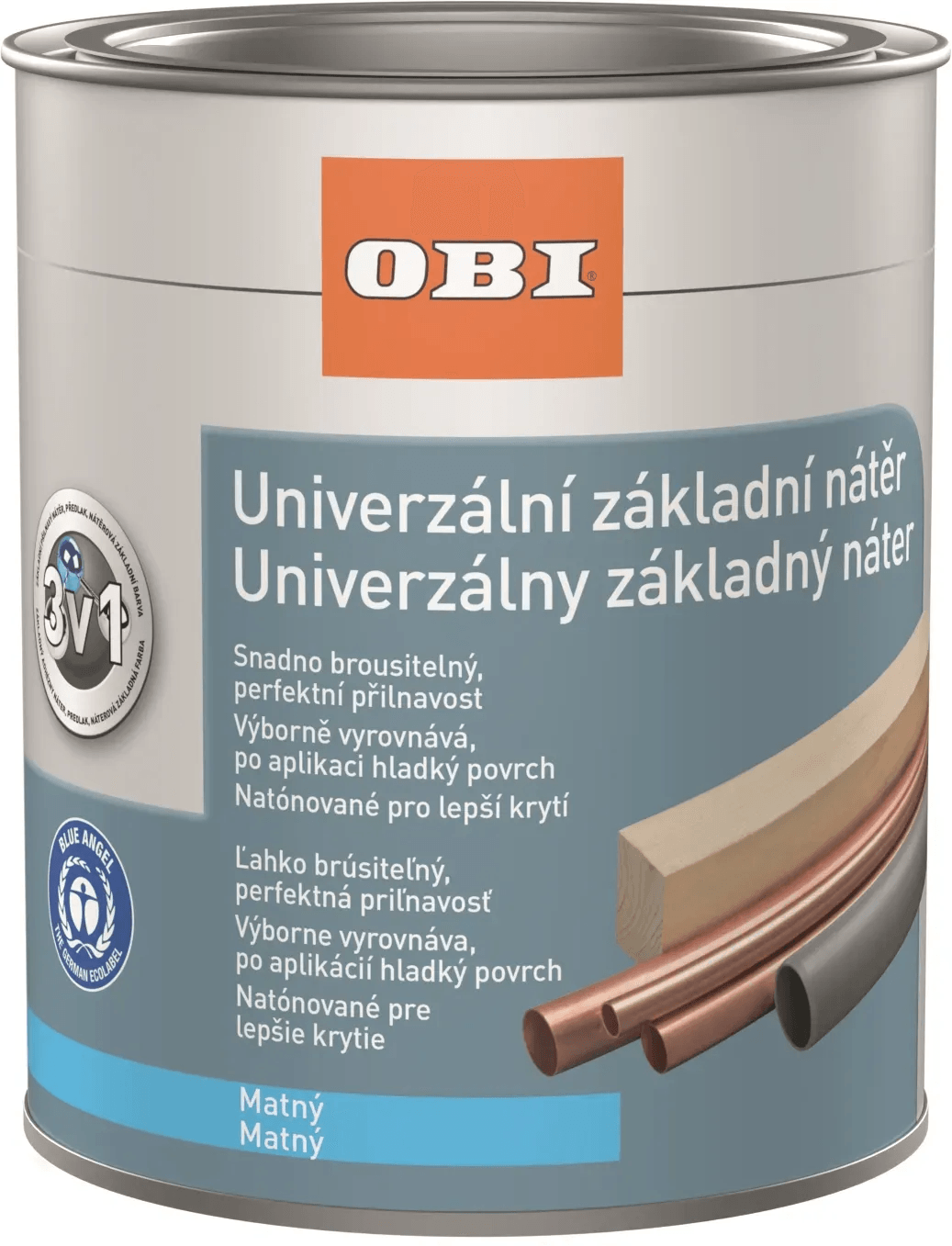 Univerzálny základný náter je ideálny prostriedok na zvýšenie priľnavosti na podklady, ako je zinok, pozinkovaná oceľ, meď, hliník, tuhé PVC. Súčasne slúži ako náter s vyrovnávacími vlastnosťami na rozmerovo stabilné a nerozmerovo stabilné drevené prvky. Náter po vyschnutí zodpovedá požiadavkám DIN EN 71.3. Univerzálny matný vodou riediteľný základný náter na následné pretretie akýmkoľvek vrchným náterom OBI na použitie v interiéri aj exteriéri. Náter nie je vhodný pre silne korózne zaťažené povrchy.