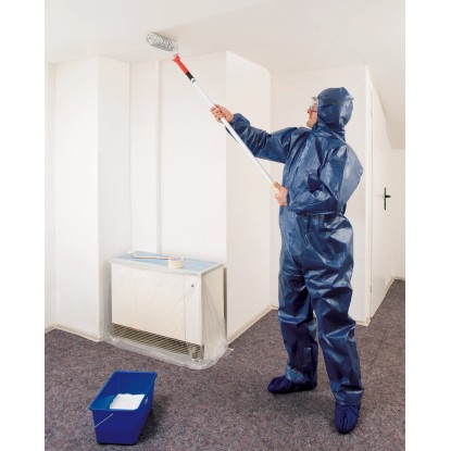LUX-TOOLS maliarsky overal z polypropylénu a s polyuretánovou povrchovou úpravou má kapucňu a na koncoch rukávov a nohavíc gumičky. Overal chráni pred hrubými, suchými nečistotami, proti pevným čiastočkám a prachu, ako aj proti tekutinám, ako sú farby.