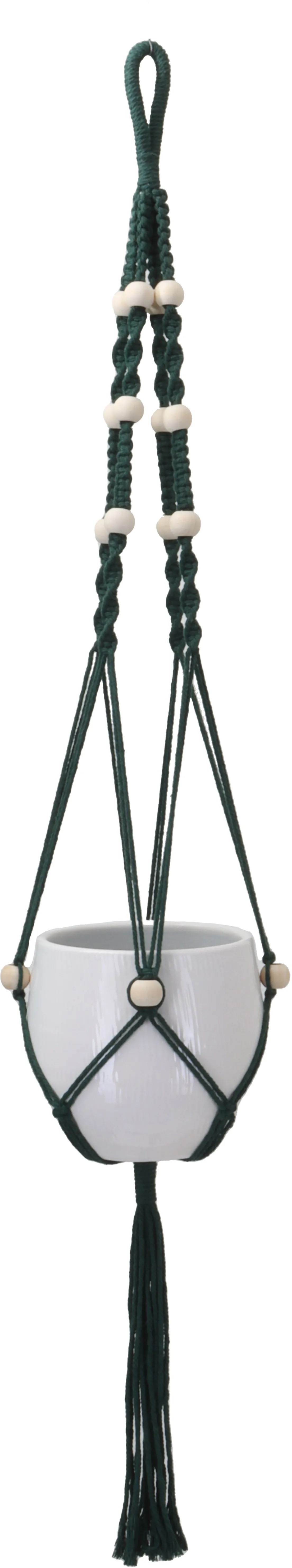 Ručne vyrobený makramé záves na kvetináč tmavo zelenej farby je vysoký 100 cm, skvele sa hodí na keramické obaly na kvetináč (20 cm x 17 cm) a má nosnosť 3 kg. Jednoduchá a originálna dekorácia nielen oživí Vašu domácnosť, ale umožní Vám pestovať aj viac kvetov, na ktoré už nebolo dostatok miesta. Závesný kvetináč je k dostaniu v rôznych módnych farbách.