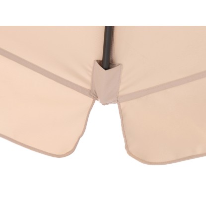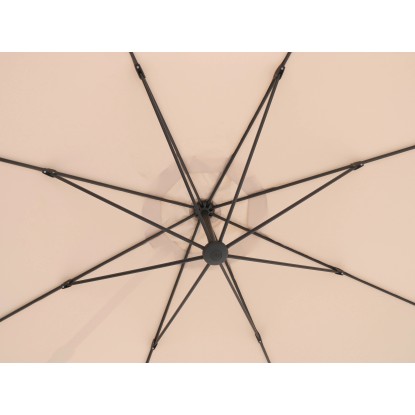 Konštrukciu slnečníka tvorí rám z ľahkého, ale stabilného hliníka s práškovým lakovaním. Snímateľný a prateľný poťah je vyrobený z odolného polyesteru s ochranným faktorom UV 50+, ktorý tak poskytne optimálnu ochranu proti slnku.