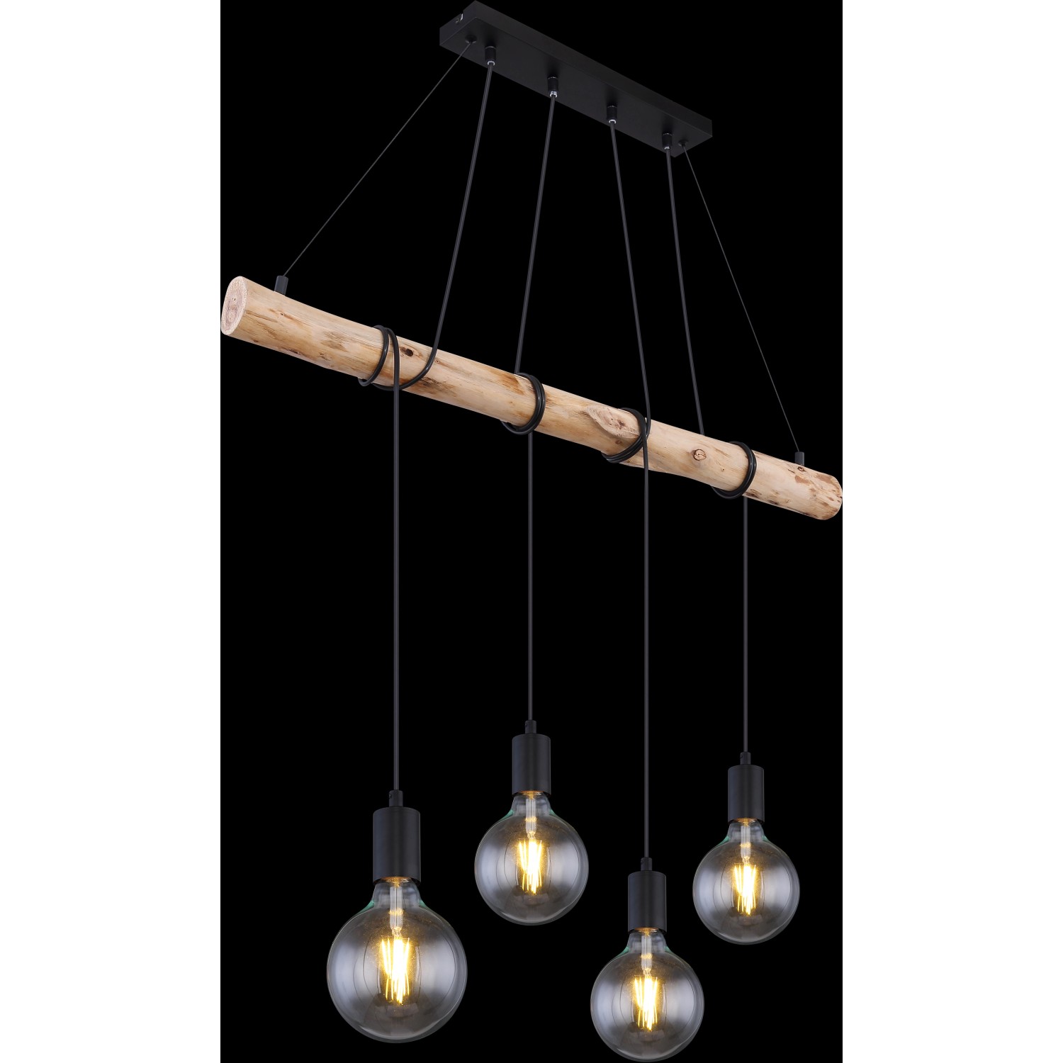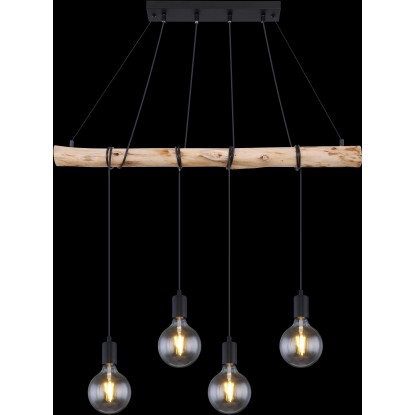 GLOBO Závesné svietidlo AUSTON, 4x E27, matne čierne/prírodné, 90 x 7 x 120 cm
