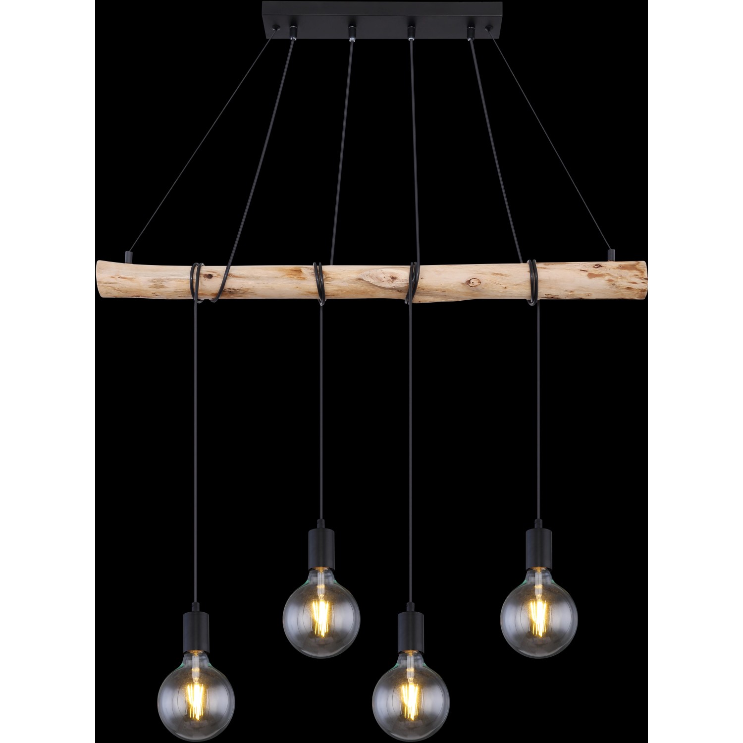 Toto pôsobivé závesné svietidlo Globo z dreva s čiernymi káblami na ovinutie je moderné a upúta pozornosť vo Vašom domove. Svietidlo môžete využiť vo vašej obývačke ako príjemné osvetlenie v jedálni alebo nad kuchynským stolom. Svietidlo je možné osadiť ľubovoľným svetelným zdrojom do maximálneho výkonu 60 W. Každý svetelný zdroj E27 je viditeľný, čo umožňuje alternatívne použiť dekoratívny svetelný zdroj. Z dôvodu úspory energie a dlhej životnosti odporúčame LED žiarovky. Svietidlo zaujme špeciálnou kombináciou materiálov, vykúzli prekrásne svetelné momenty a zaisťuje útulnú atmosféru v obytných priestoroch.