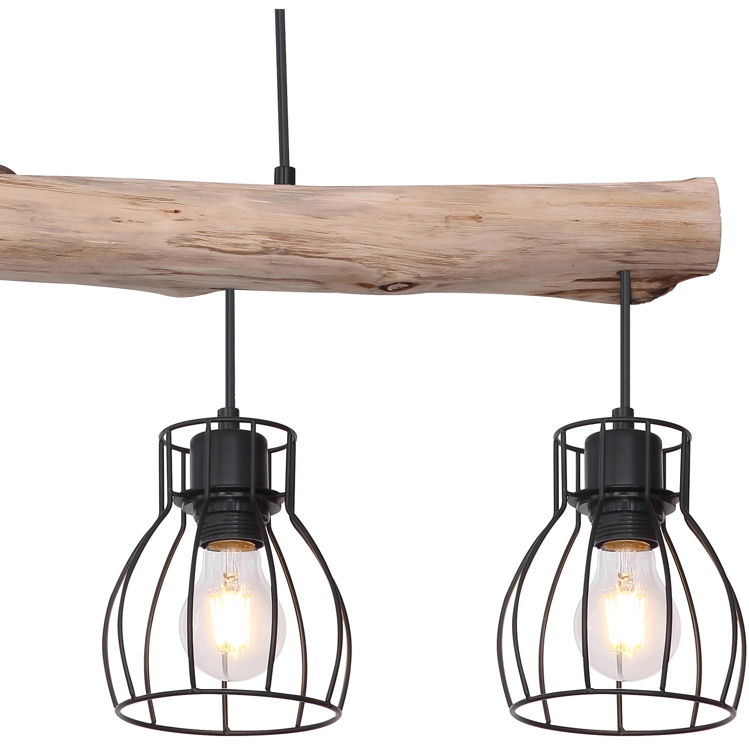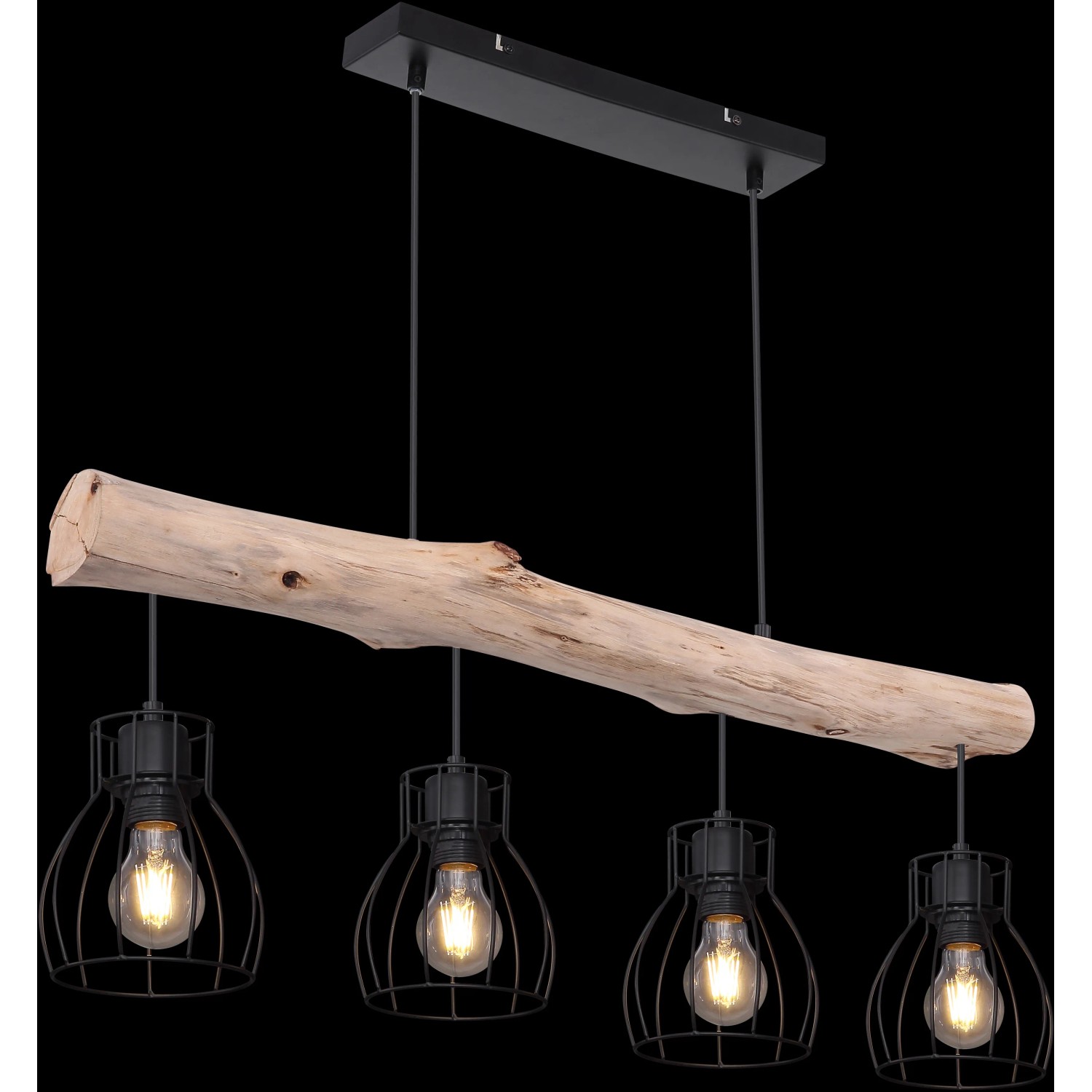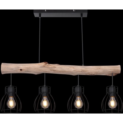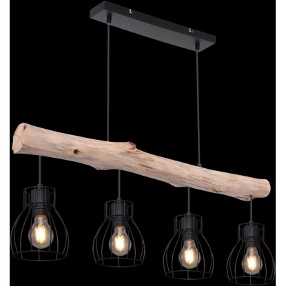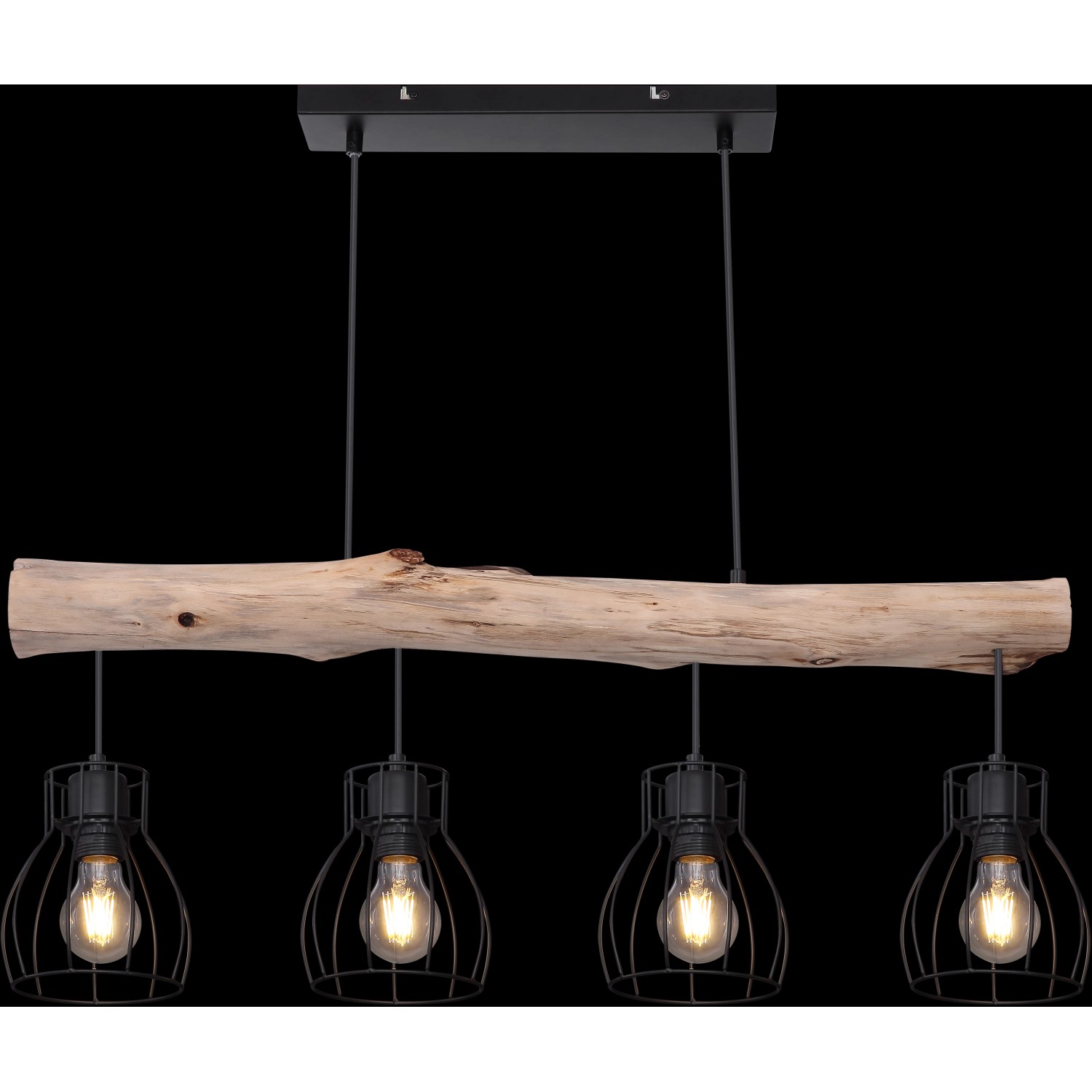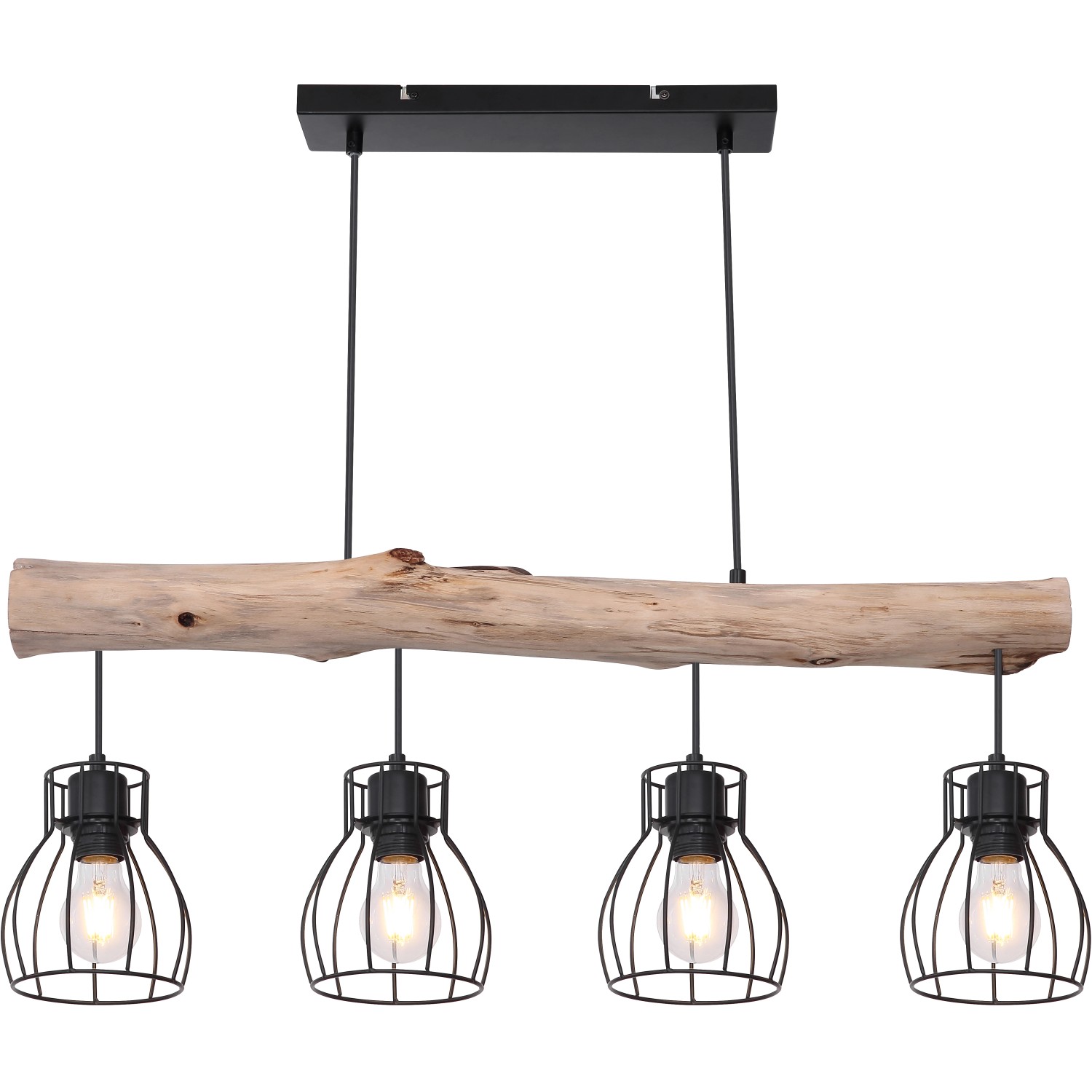 GLOBO Závesné svietidlo MINA, 4x E27, mat. čierne/prírodné, 82,5 x 13,6 x 140 cm