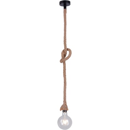 Závesné svietidlo Rope s rustikálnym, prímorským vzhľadom je dodávané bez žiarovky a je teda nutné ho vybaviť žiarovkou s päticou E27 s maximálnym výkonom do 15 W. Určite si sami, aký svetelný zdroj použijete. Rustikálny vzhľad svietidla najlepšie zdôrazníte použitím dizajnovej filamentovej žiarovky napr. s jantárovým sklom. Vďaka tomu na seba svietidlo zaručene upúta pozornosť. Krásne závesné svietidlo so zauzlovaným lanom zaručene zaujme vo vašom obytnom priestore jedinečné miesto. Rozmery: pr. 10 x 120 cm.
