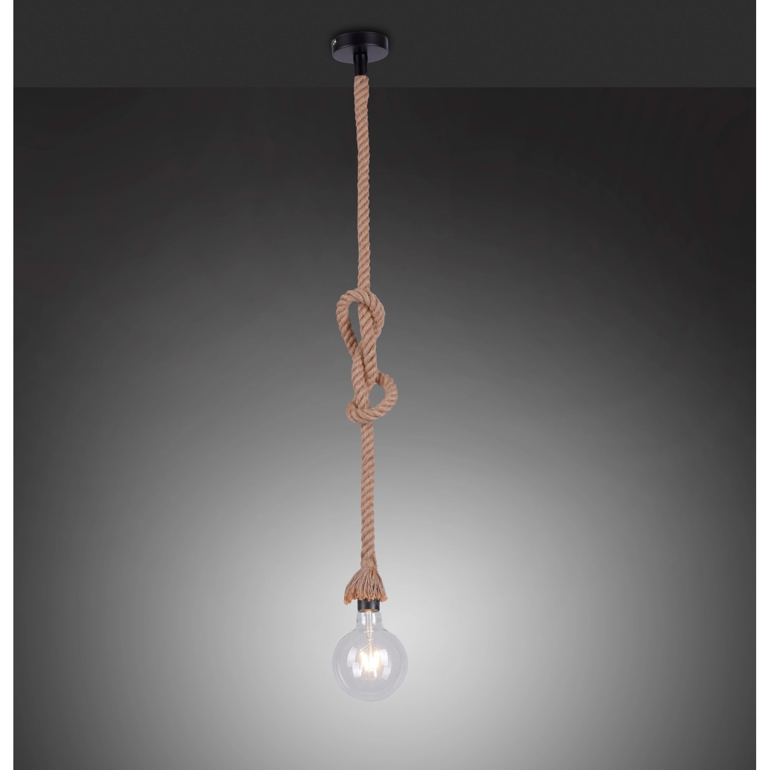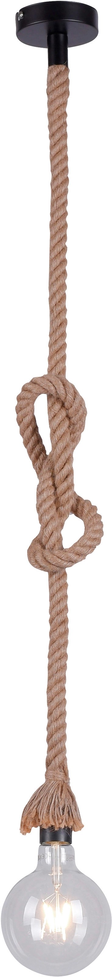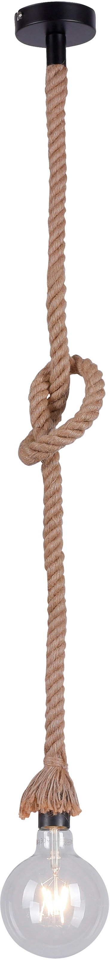 Just Light. Závesné svietidlo Rope 1-bod., prírodná/čierna, pr. 10 x 120 cm