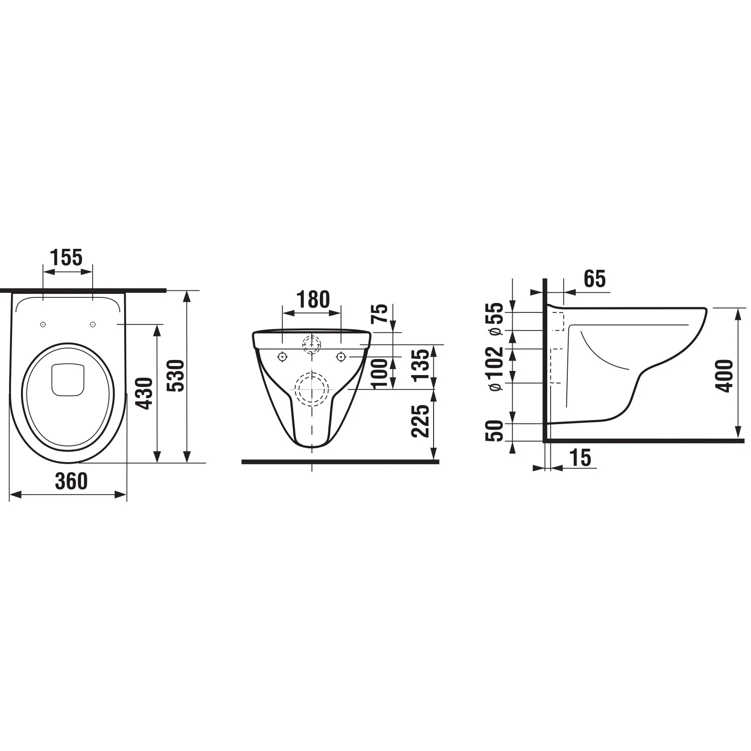 - Závesné WC LYRA PLUS H8233800000001, s hlbokým splachovaním, s viditeľným uchytením